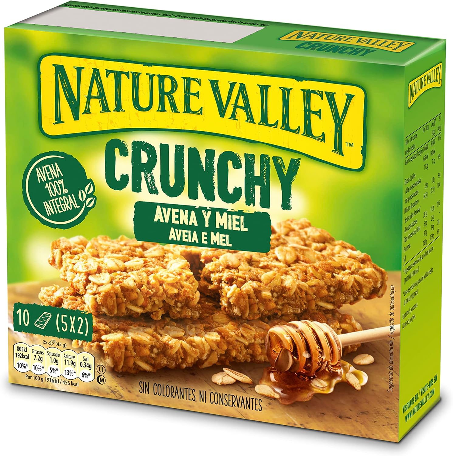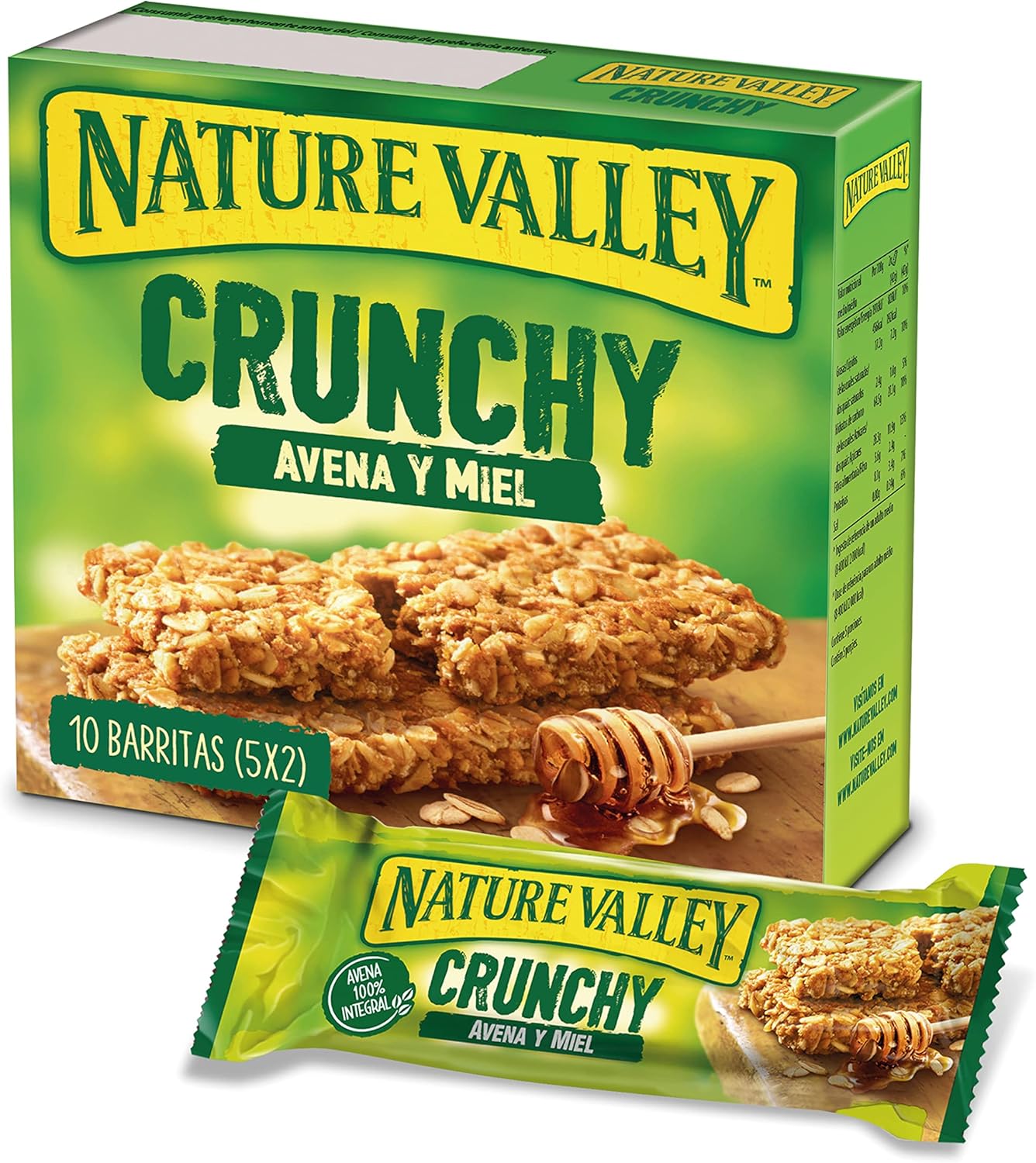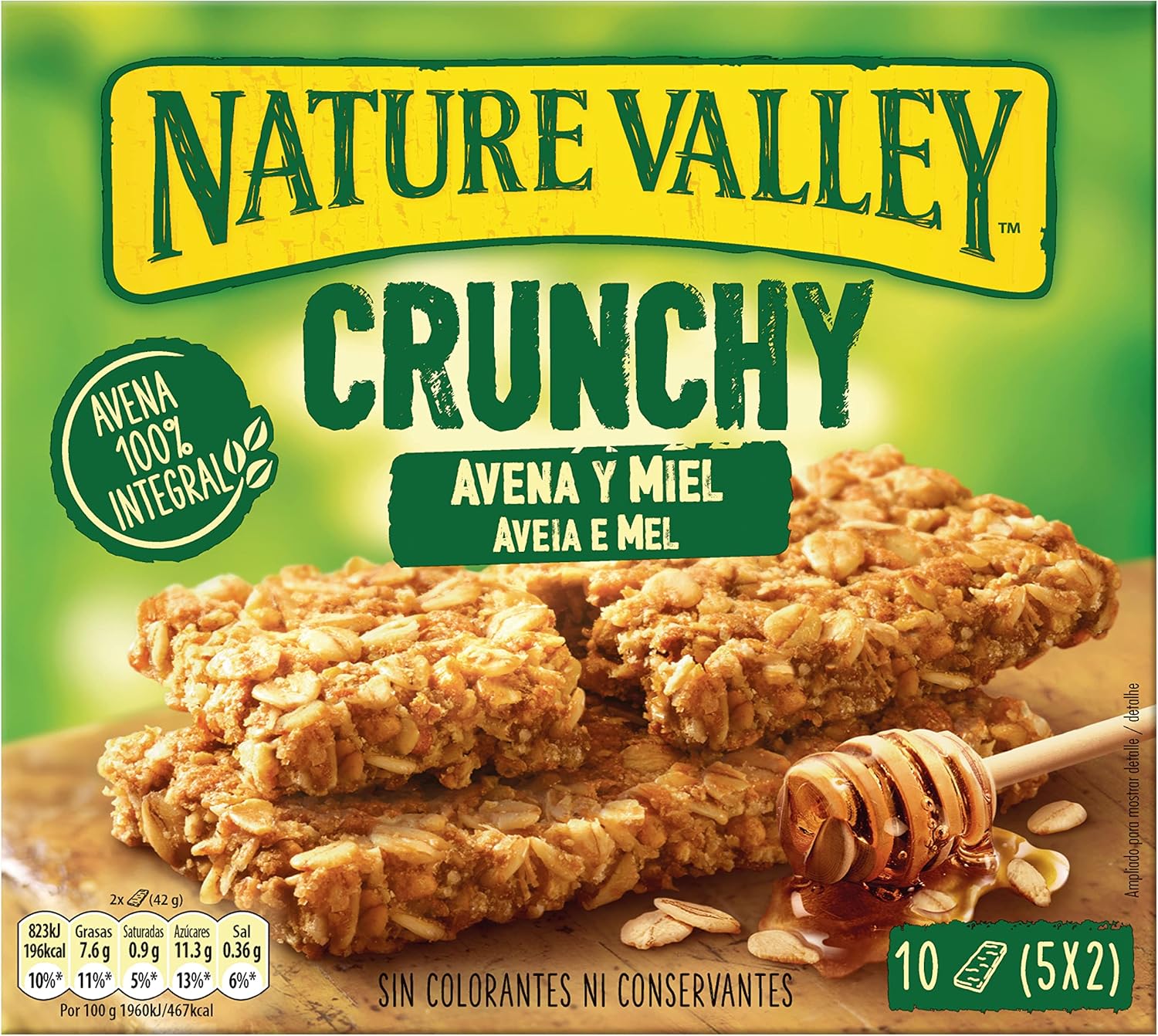 Nature Valley Crunchy, 100% Whole Grain Oat Bars and Honey, No Dyes, Natural Ingredients, Suitable for Vegetarians, 5x42g (2 bars per pack)