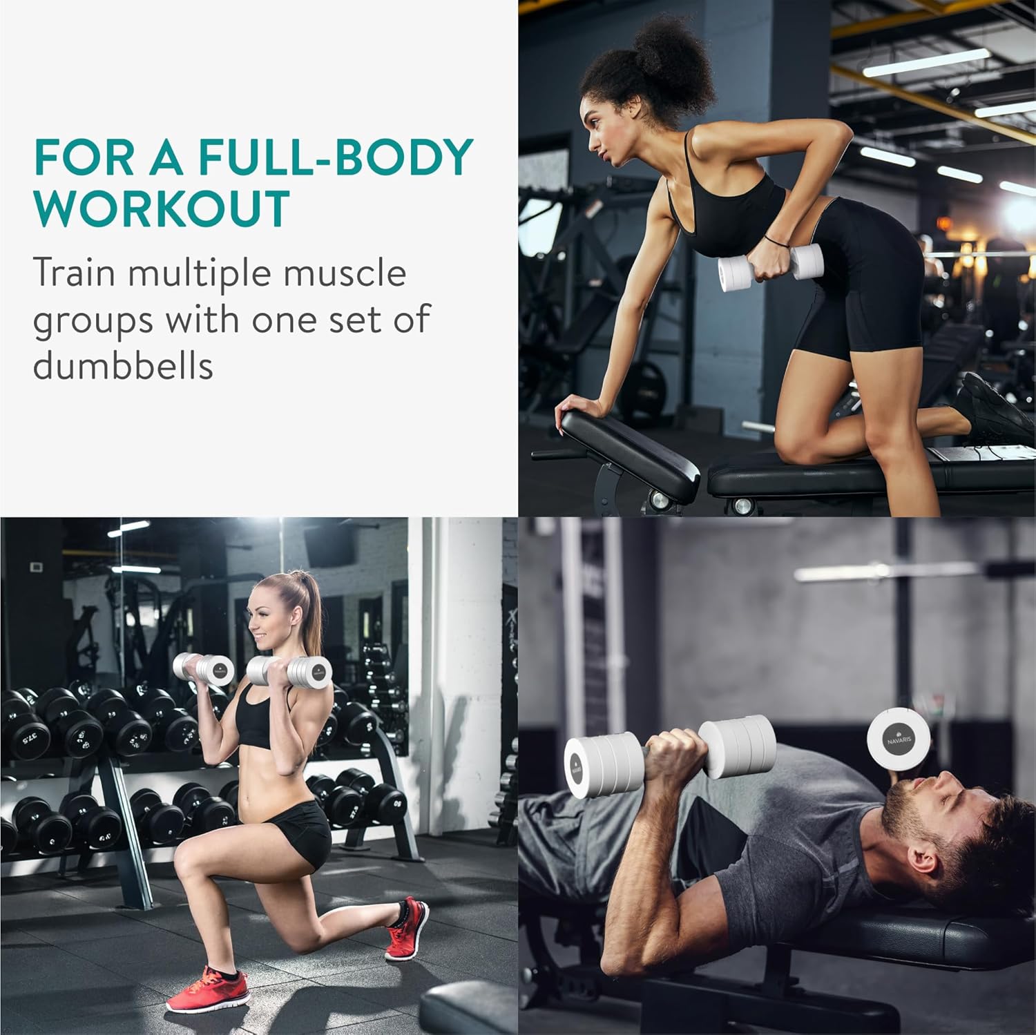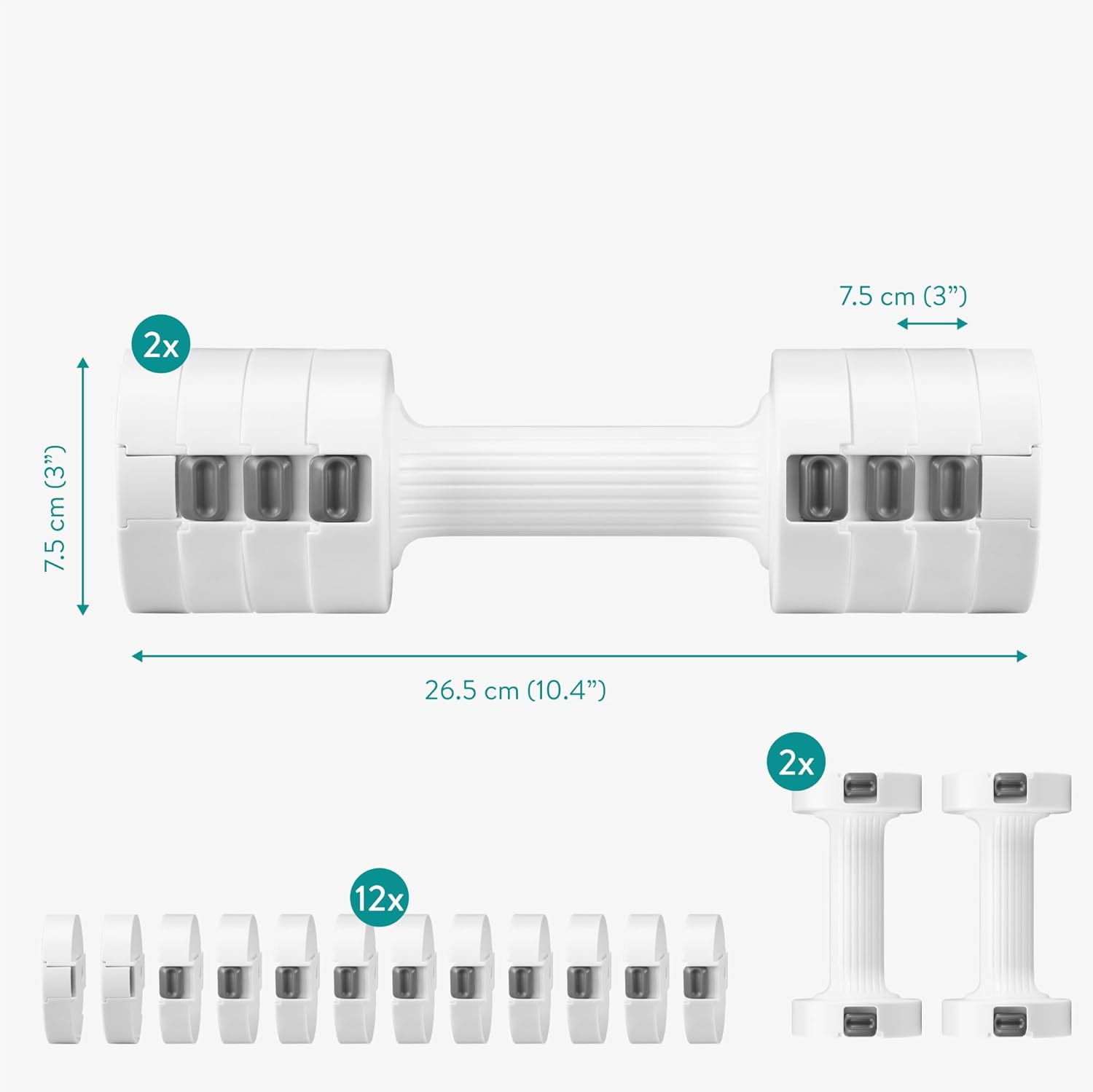 Customize your workout with Navaris adjustable weights for women and men. Each dumbbell allows you to adjust the weight up to 3.5kg using the included 12 x 0.25kg plates. Compact, durable and with non-slip handle, this home weight set is ideal for training different body parts from the comfort of your home.