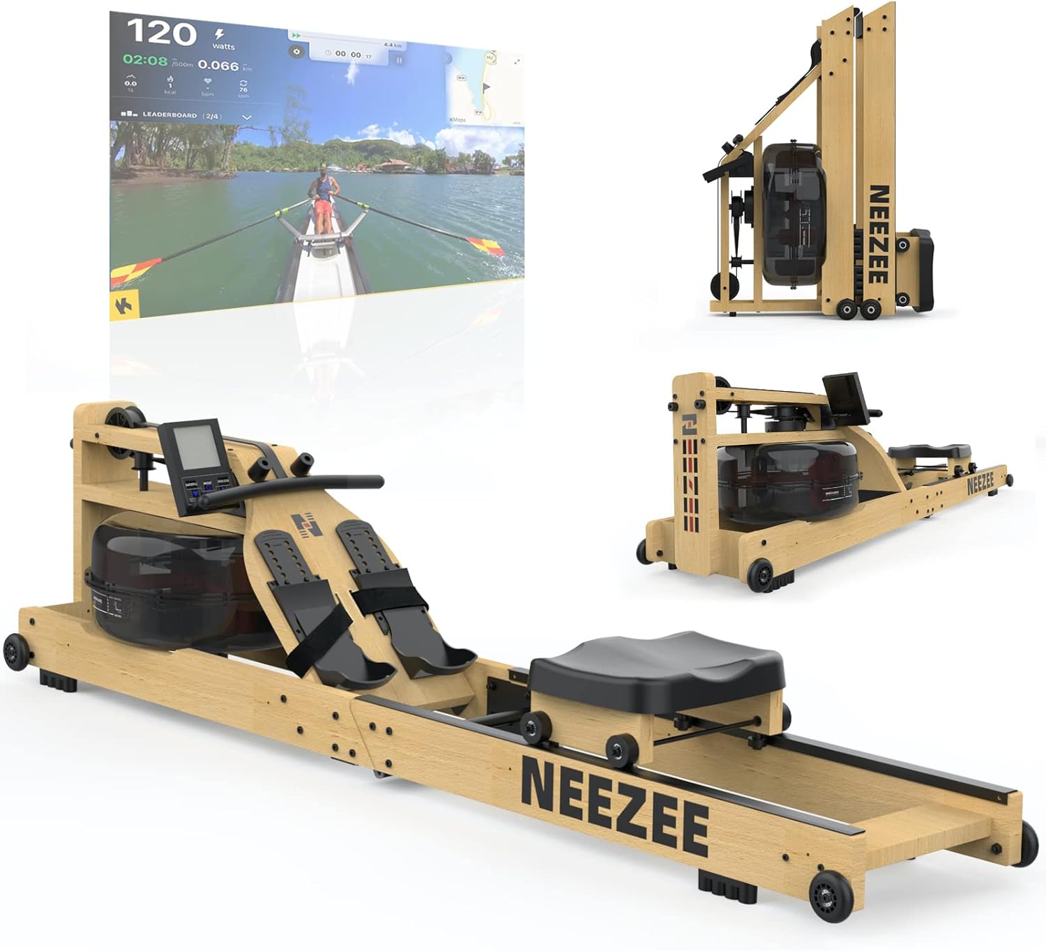 Water Rowing Machine – Neezee Wooden Rowing Machine is specially designed to simulate real rowing in water. Water resistance ensures you a realistic and stable rowing experience in every rowing workout; the resistance level depends on the amount of water and your paddle speed. The real sound of the paddles facilitates your training without the annoying noise of the engine and chain.