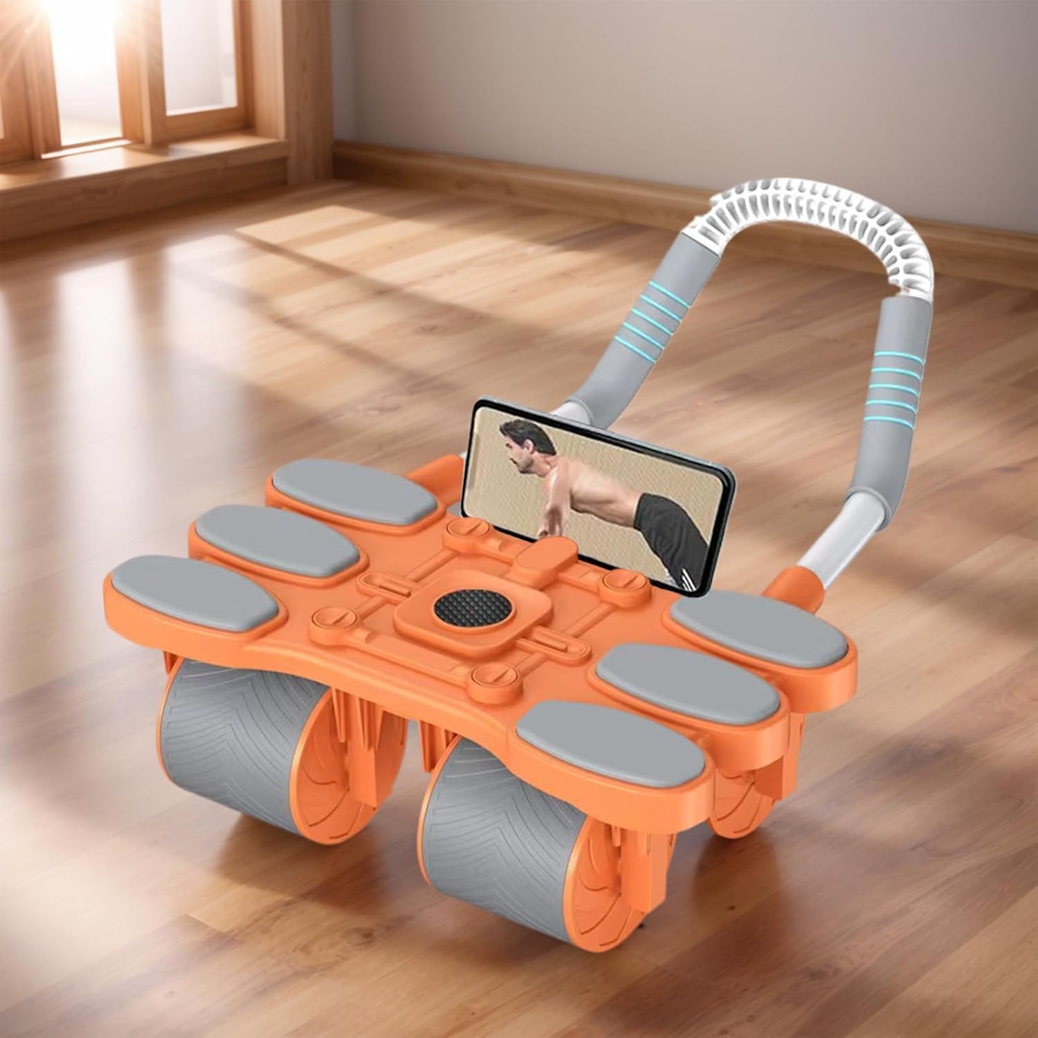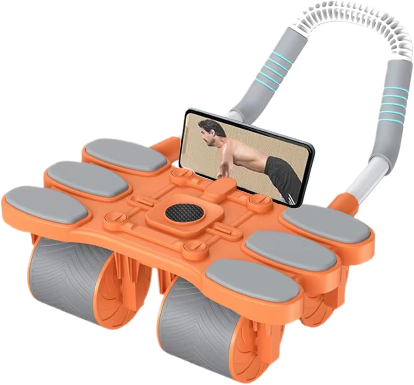 Soporte desmontable para teléfono: el rodillo abdominal cuenta con un soporte desmontable para teléfono que mejora la comodidad durante los entrenamientos al sostener de forma segura tu herramienta para una fácil visualización de videos de entrenamiento o clases virtuales mientras se dirige a los músculos del pecho y el núcleo en casa o al aire libre