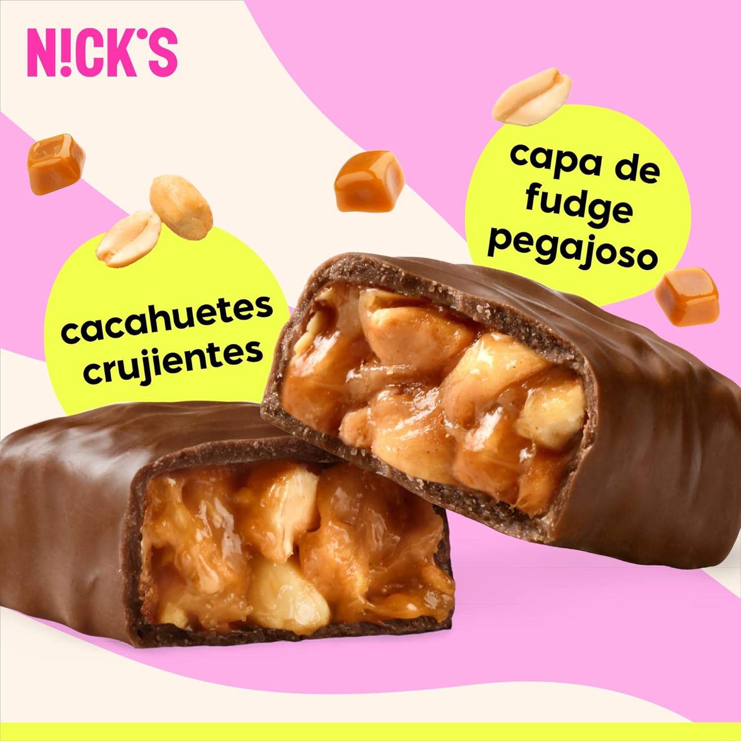 NICKS Peanuts n’ Fudge es un snack completo, repleto de cacahuetes y dulce de azúcar, todo cubierto con delicioso chocolate con leche. Es perfecto para todos los que quieren disfrutar y sentirse bien al mismo tiempo, y sienten una fuerte pasión por la combinación de cacahuetes y chocolate.