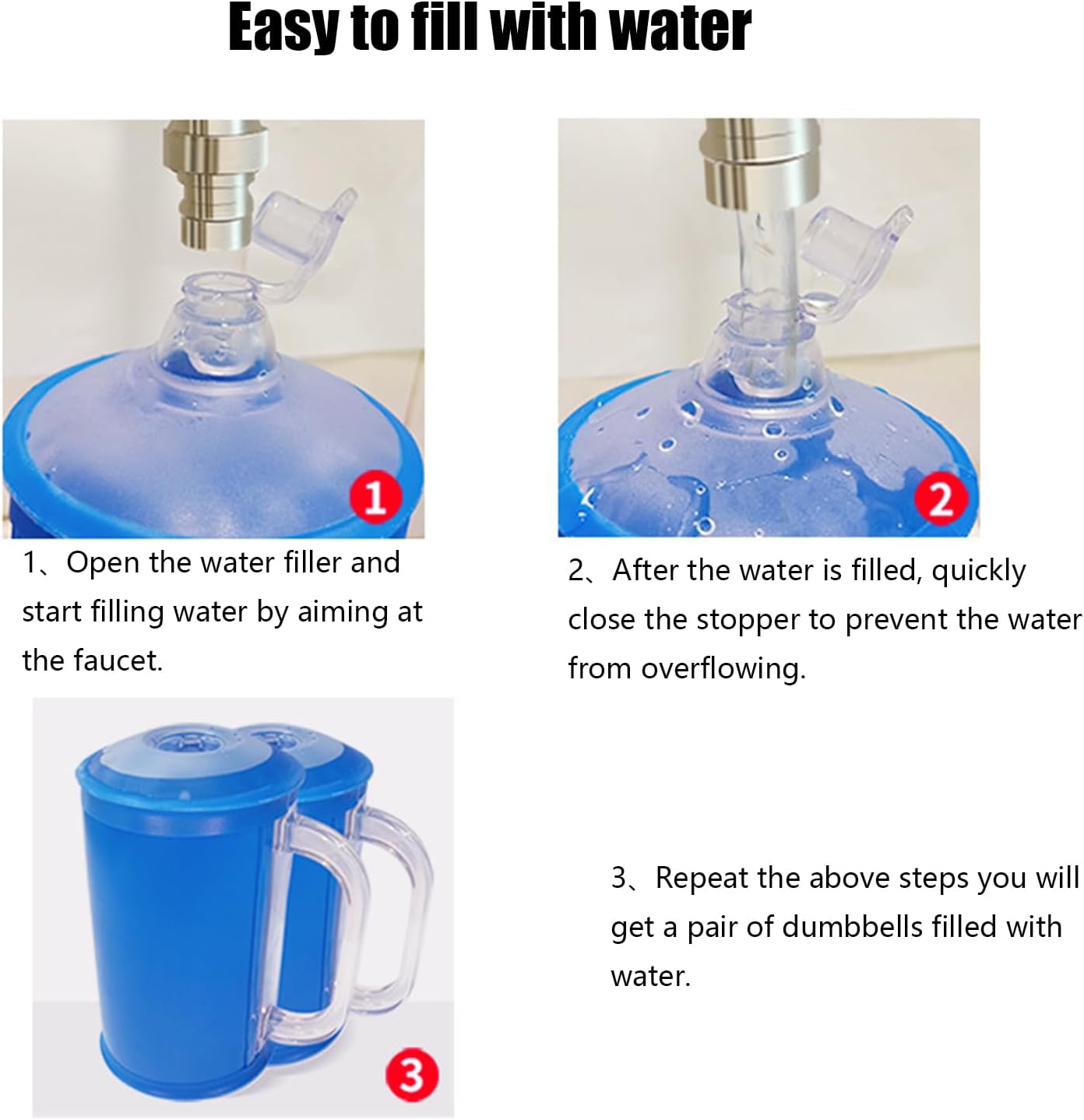 CUSTOMIZABLE WEIGHT – These dumbbells can be easily filled with water to achieve your desired weight. Before filling, a pair weighs 0. 2 kg. 44 lbs, but once filled, they can up to 5kg in total.