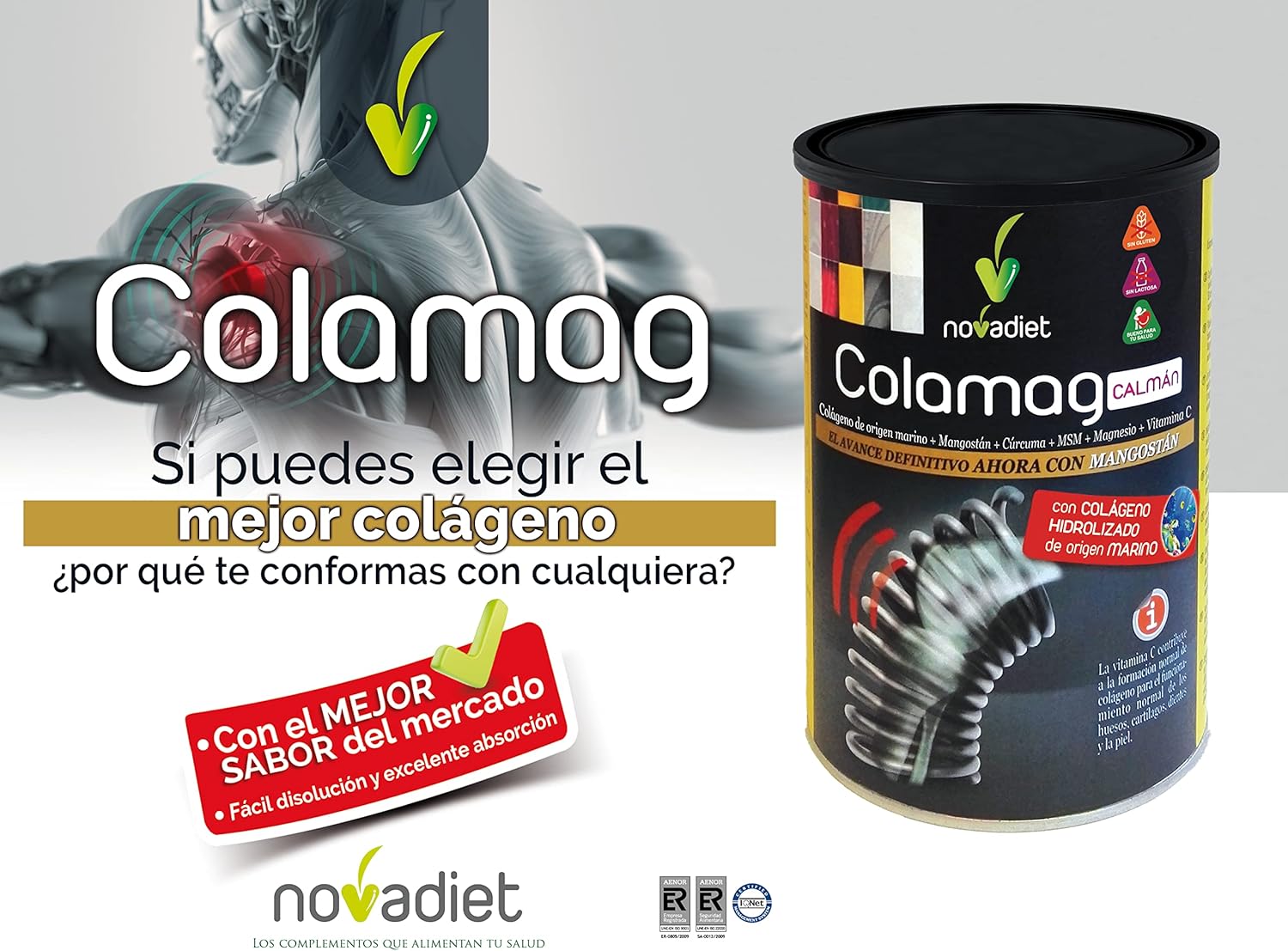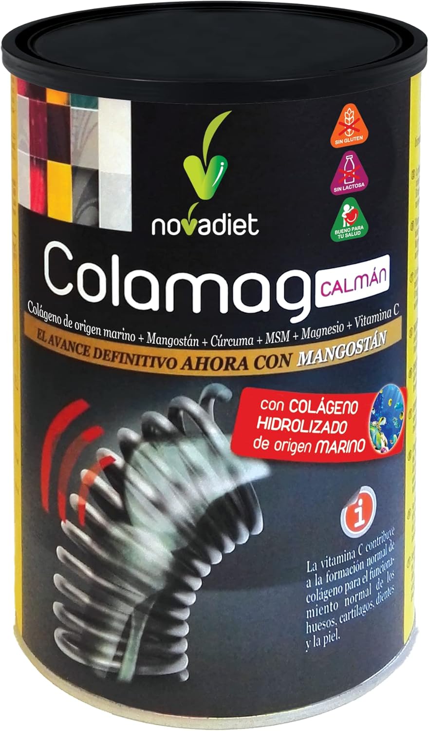 Novadiet – COLAMAG CALMÁN with Collagen Marine Origin, Mangosteen, Turmeric, Vitamin C, Magnesium, Skin, Bones, Muscles, Joints, Cartilage, Collagen Formation Aid 300 g (300 g Bottle)