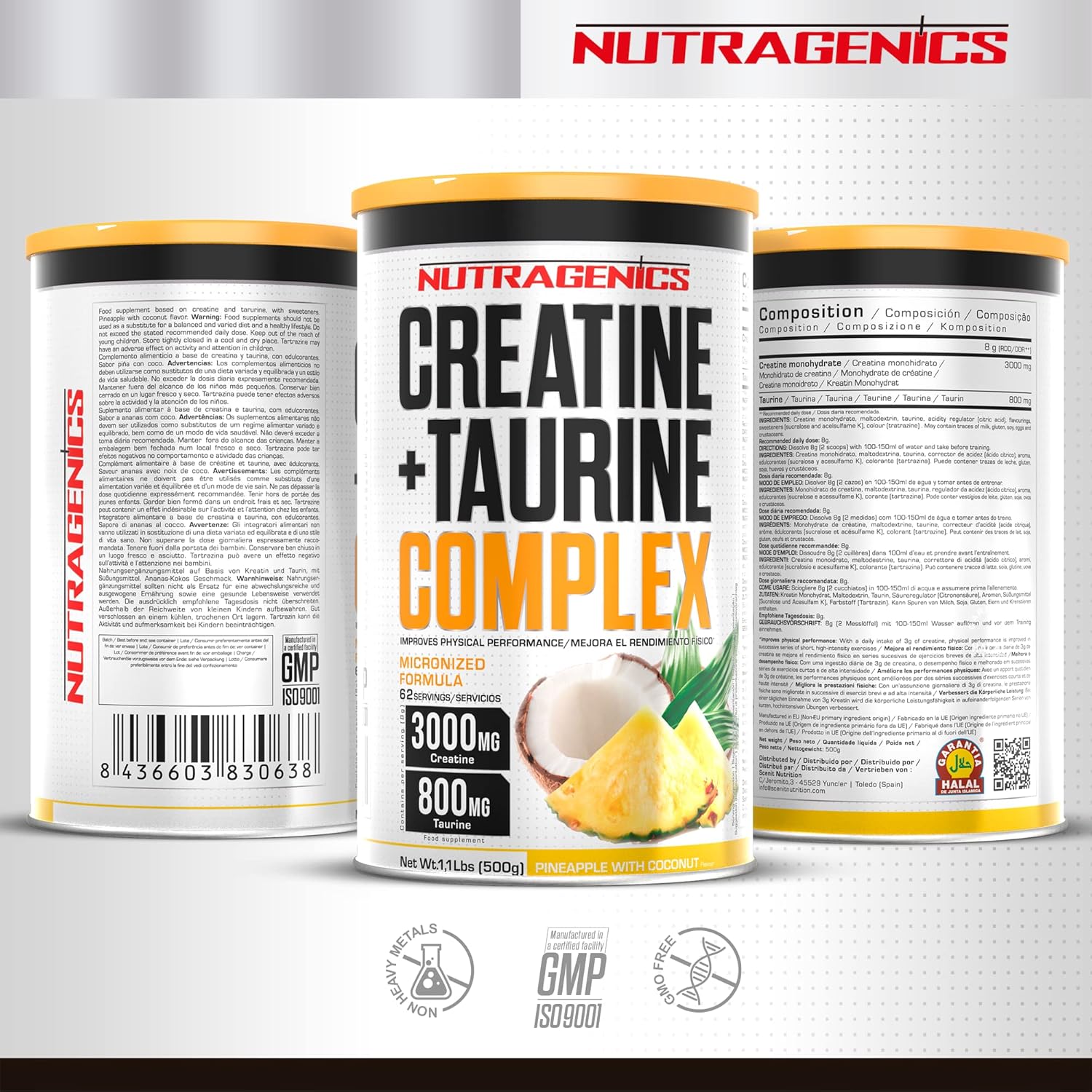 La fabricación de Creatine + Taurine de Nutragenics está respaldada por las normas ISO-9001 y GMP (Good Manufacturing Practices).