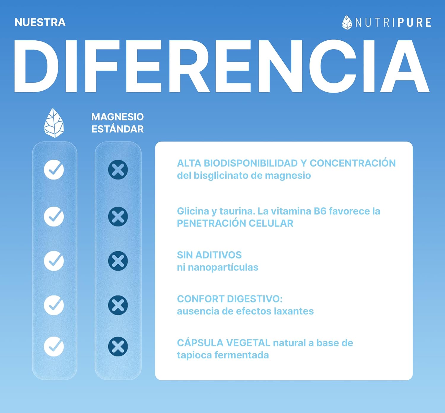 MAGNESIUM TAURINE B6 FOOD SUPPLEMENT – Since magnesium is essential for the body, Nutripure Magnesium Taurine B6 complex is a food supplement that helps reduce fatigue, improve sleep and maintain normal functioning of the nervous system, muscle function and protein synthesis.