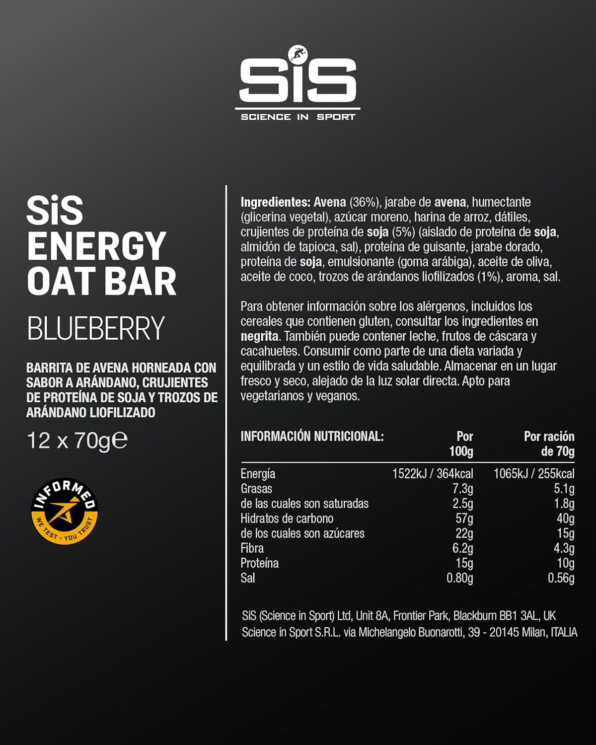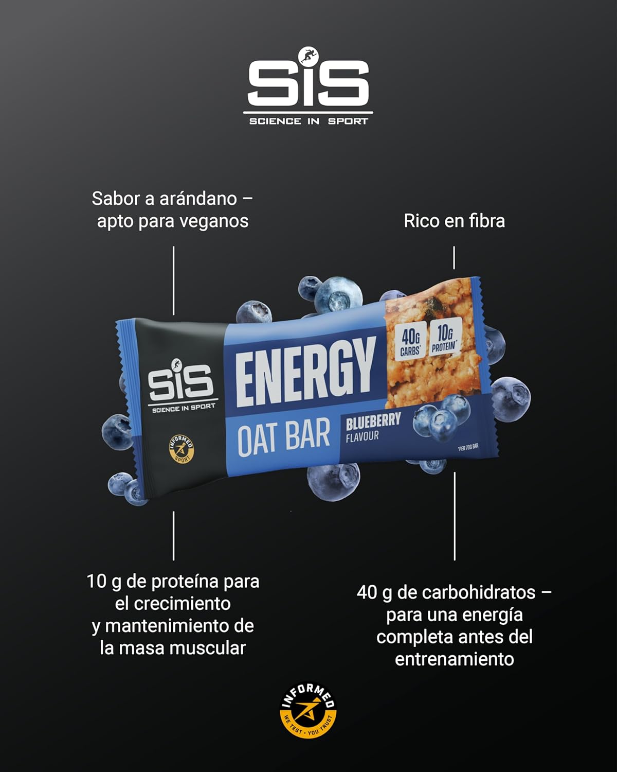 Whether you’re running in the morning, getting ready for an afternoon workout session, or recovering after an intense session, the Energy Oat Bar is your go-to snack for sustained performance. Packed with whole-grain oats, this delicious bar provides 40g of carbs for a constant release of energy, ideal for pre-workout or competition recharging. With 10 grams of protein, it supports muscle repair and growth, making it a smart choice before, during or after exercise. Its natural fiber content promotes digestive health and helps you feel satiated for longer, meeting your energy needs throughout the day. Made with simple, high-quality ingredients, the Energy Oat Bar is more than just fuel: it’s a convenient and delicious way to meet the daily demands of an active lifestyle.