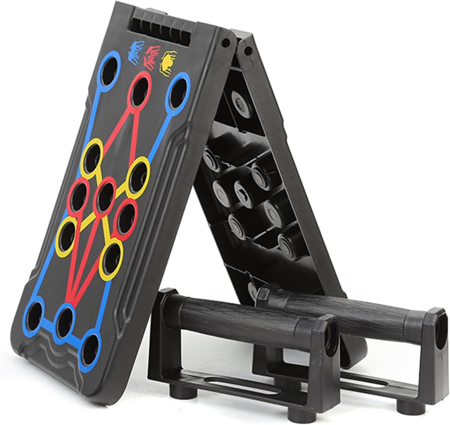 MULTIFUNCTIONAL PULL-UP BOARD – This 14-in-1 multifunctional push-up machine is color-coded for pecs, abs, arms and dorsi latissimus (blue, chest, red, shoulders, green – triceps, yellow – back). Suitable for all types of push-ups.