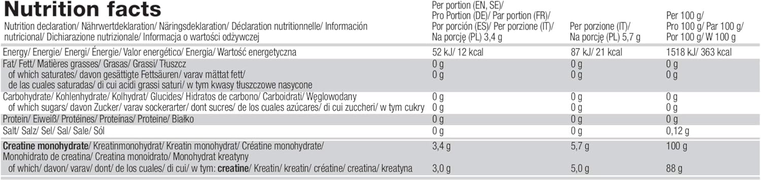 The product contains creatine monohydrate, a molecule found in the human body by nature.