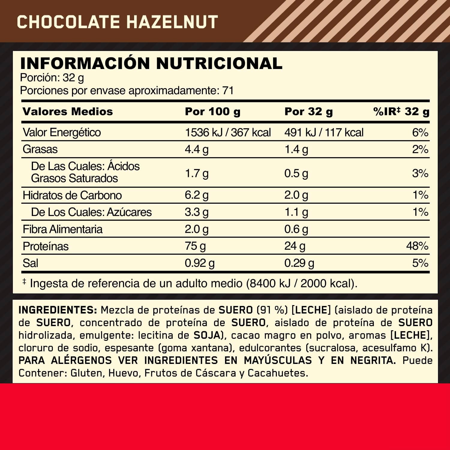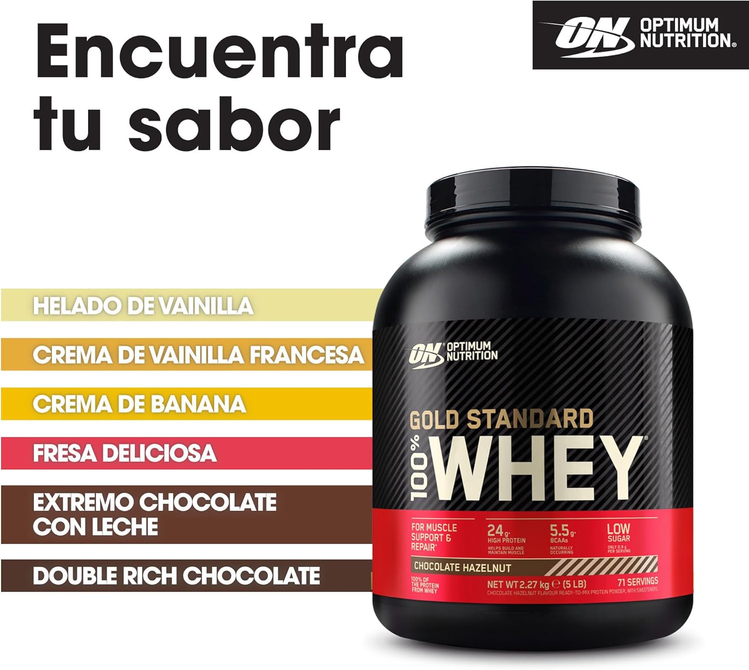 Optimum Nutrition Gold Standard 100% Whey, Protein Powder for Muscle Recovery and Development with Natural Glutamine and BCAA Amino Acids, Chocolate Hazelnut Flavor, 71 Doses, 5 lbs