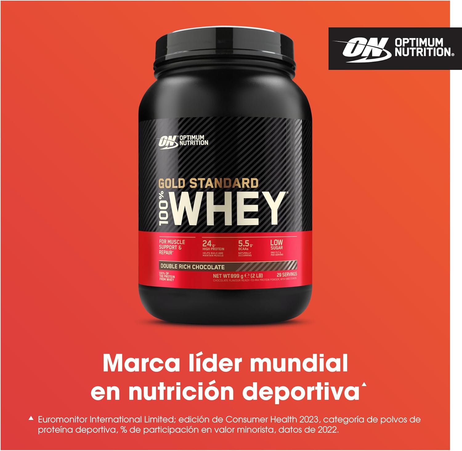 Optimum Nutrition Gold Standard 100% Whey, Protein Powder for Muscle Recovery and Development with Natural Glutamine and BCAA Amino Acids, Double Rich Chocolate Flavor, 29 Doses, 900g