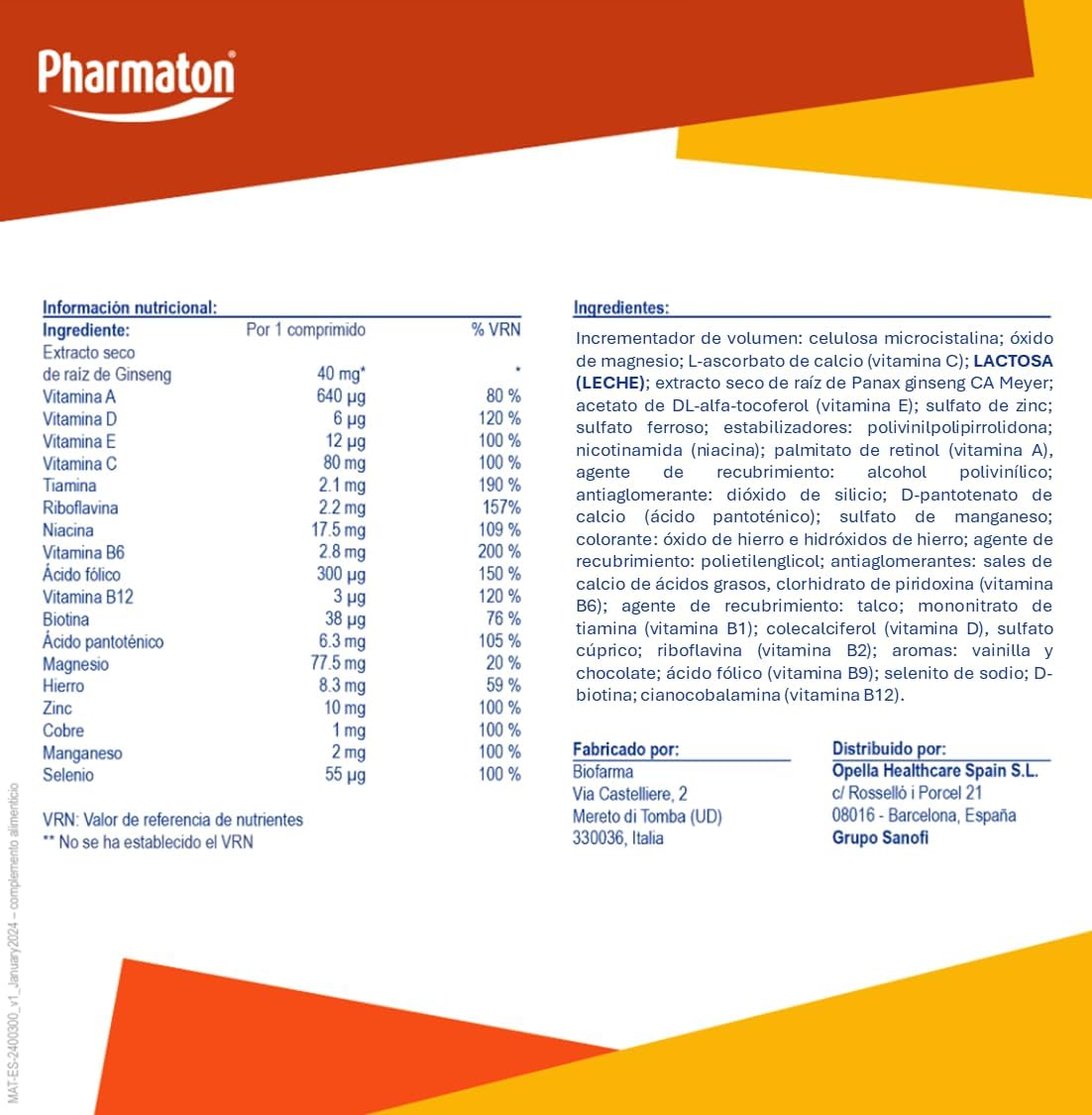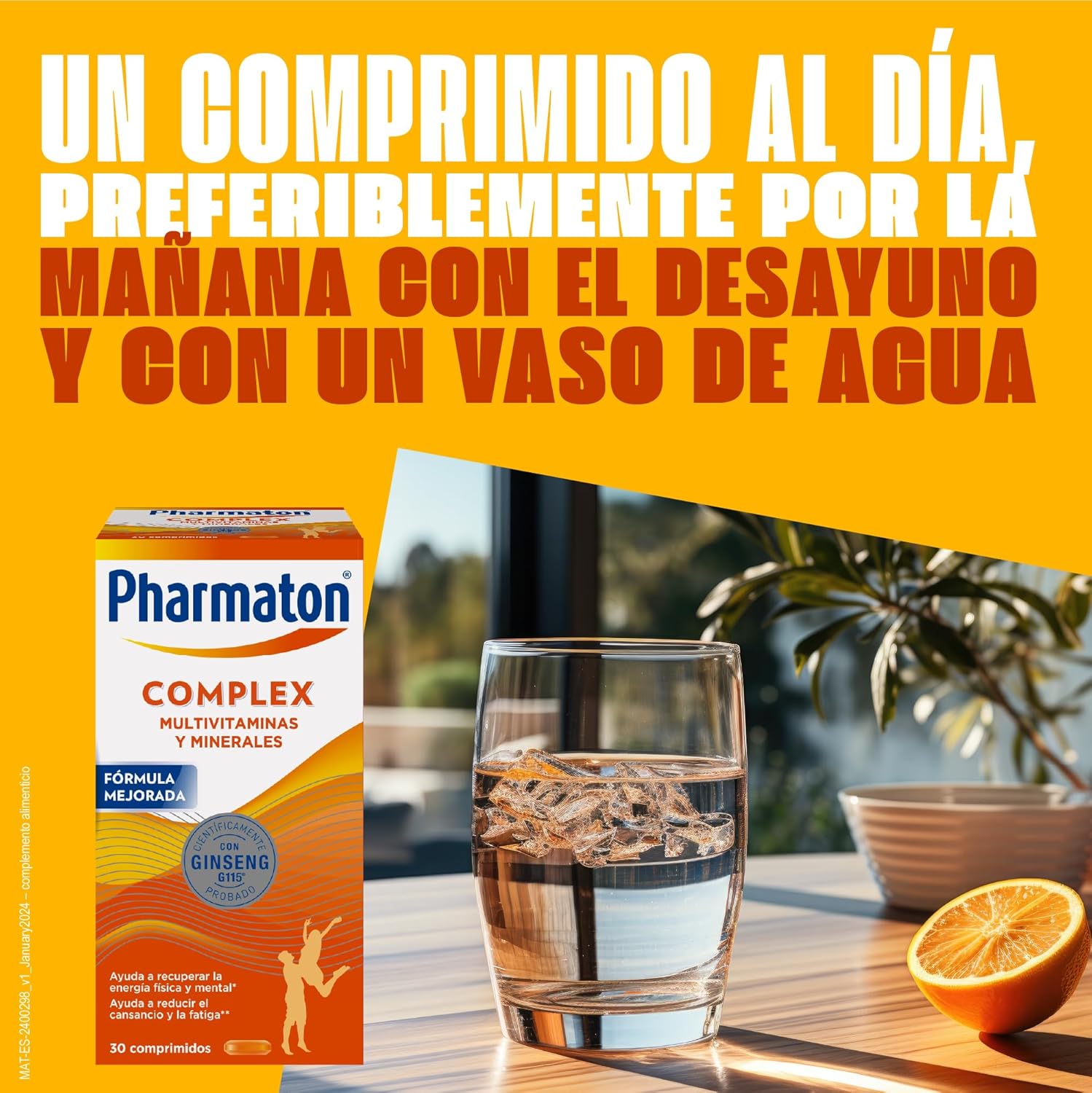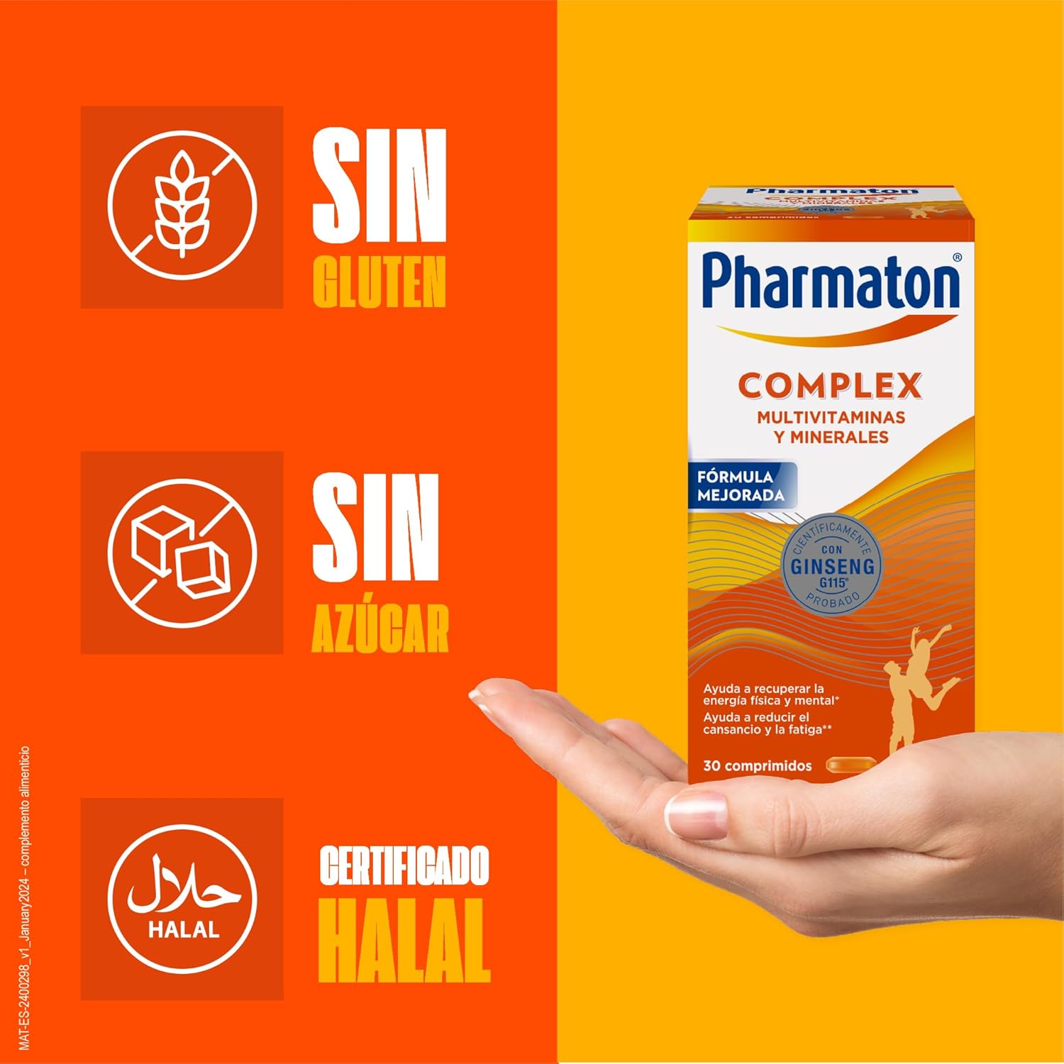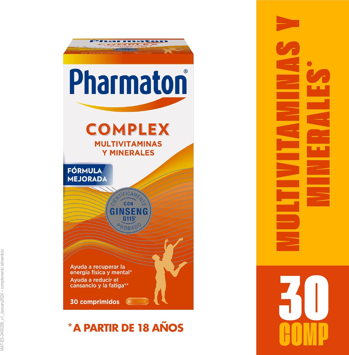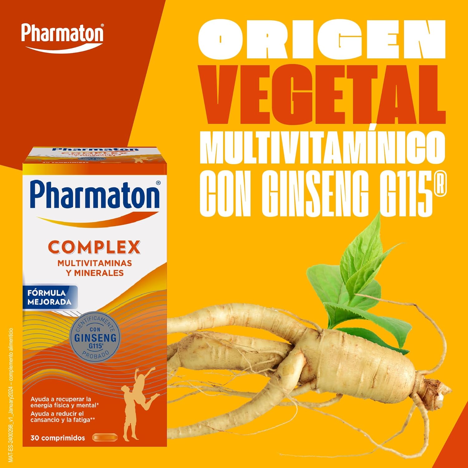 Pharmaton Complex is the only multivitamin complex containing Ginseng G115. The standardized extract of Ginseng G115, of 100% natural origin, gives you the energy you need and provides you with greater physical and mental well-being to face the challenges of your day to day. Its exclusive formula with Ginseng G115 and B vitamins helps you maintain physical and mental performance, good cognitive performance and reduce fatigue. So you can feel more vital and energetic all day. Various scientific studies have shown its positive effects on tiredness and quality of life. Pharmaton Complex, the energy your day asks! Pharmaton Complex is available in packs of 30, 60, 100, 200 easy-to-swallow coated tablets.