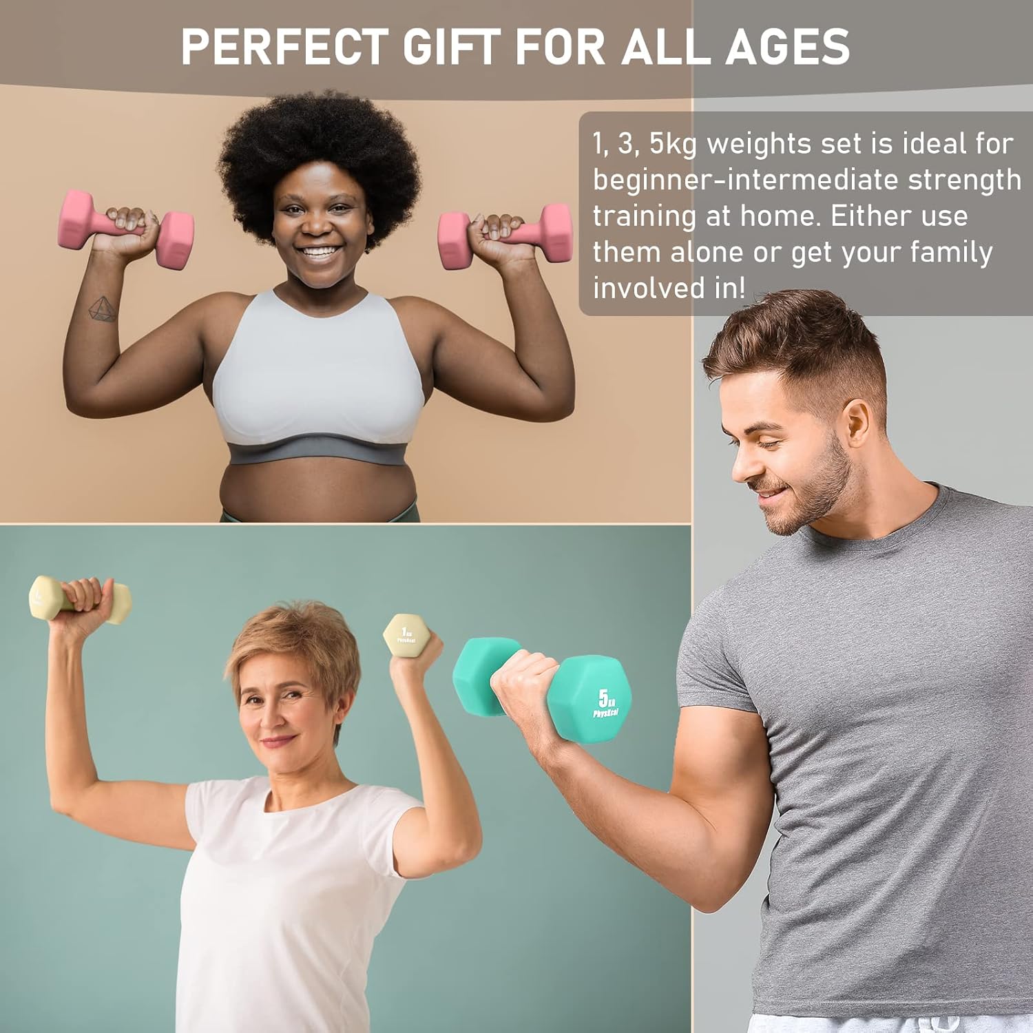 PERFECT FOR ALL AGES – If you’re looking for gift ideas for her/him, look no further! 1kg, 3kg, 5kg hand weights set is a popular choice for most home workouts. Use these hand weights to add resistance to training, physiotherapy, rehabilitation routines to encourage muscle growth, accelerate metabolism and improve cardiovascular fitness. Wear them alone or involve your family in workouts!