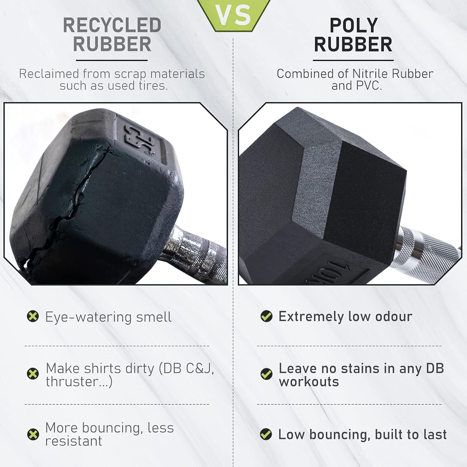 ✅ ODOR FREE COATING: Say no to irritating smell or lingering smells on the hands of traditional rubber kettlebells! Wrapped in an 8mm thick polyurethane coating of NBR and injection-molded PVC, these hex dumbbells are extremely low in odor and slightly harder compared to traditional dumbbells.