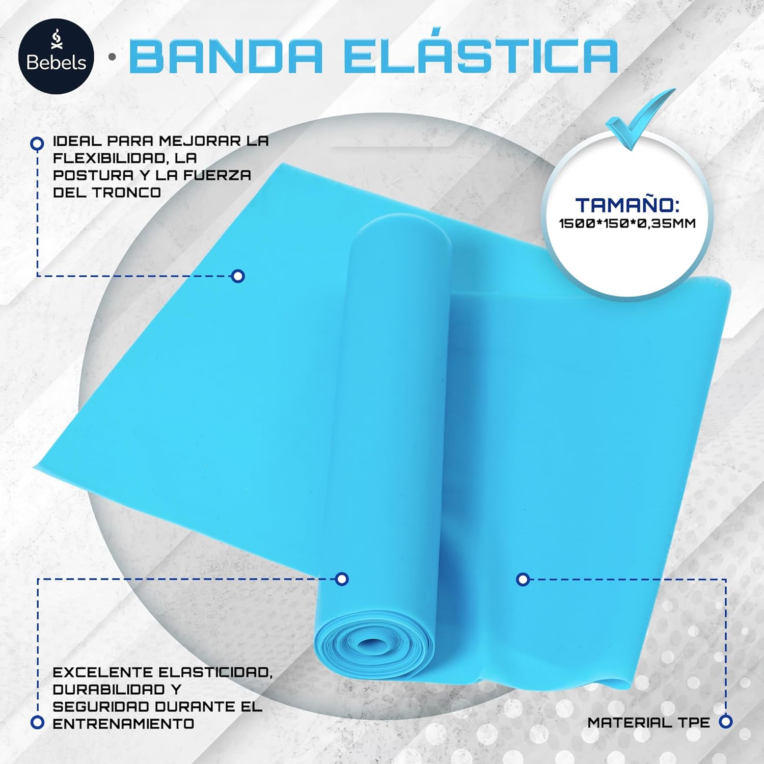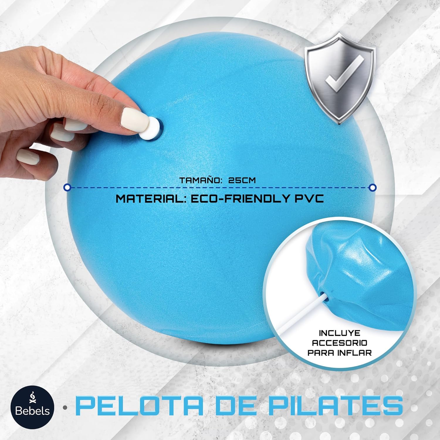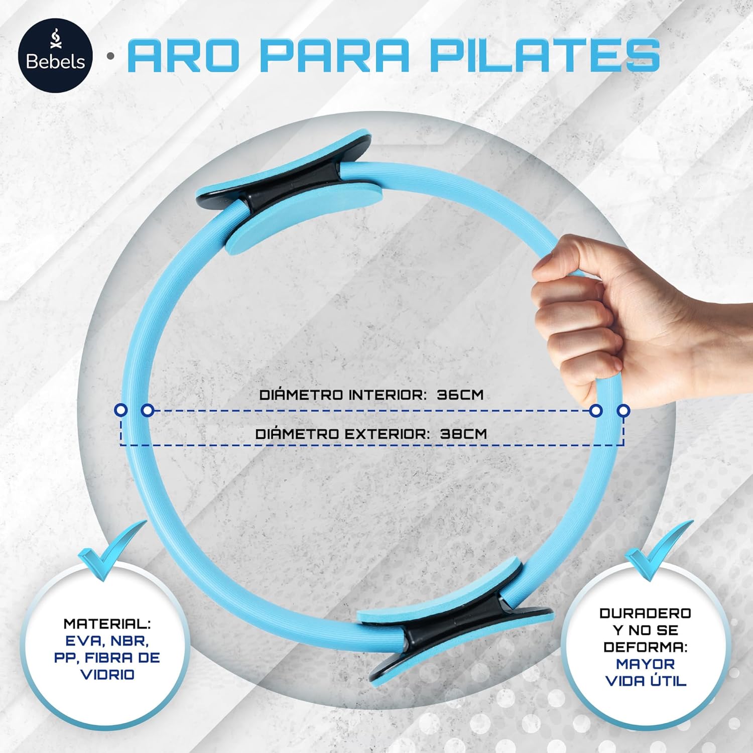 Easy and complete home gym! Transform your home into a gym with our Pilates kit: 15 inch hoop, 5 resistance bands with 5 levels, elastic rubber, 25 cm ball with pump, polyester bag to store your kit and exercise guide with the bands. Perfect for strengthening muscles, improving flexibility and saving time without leaving home.