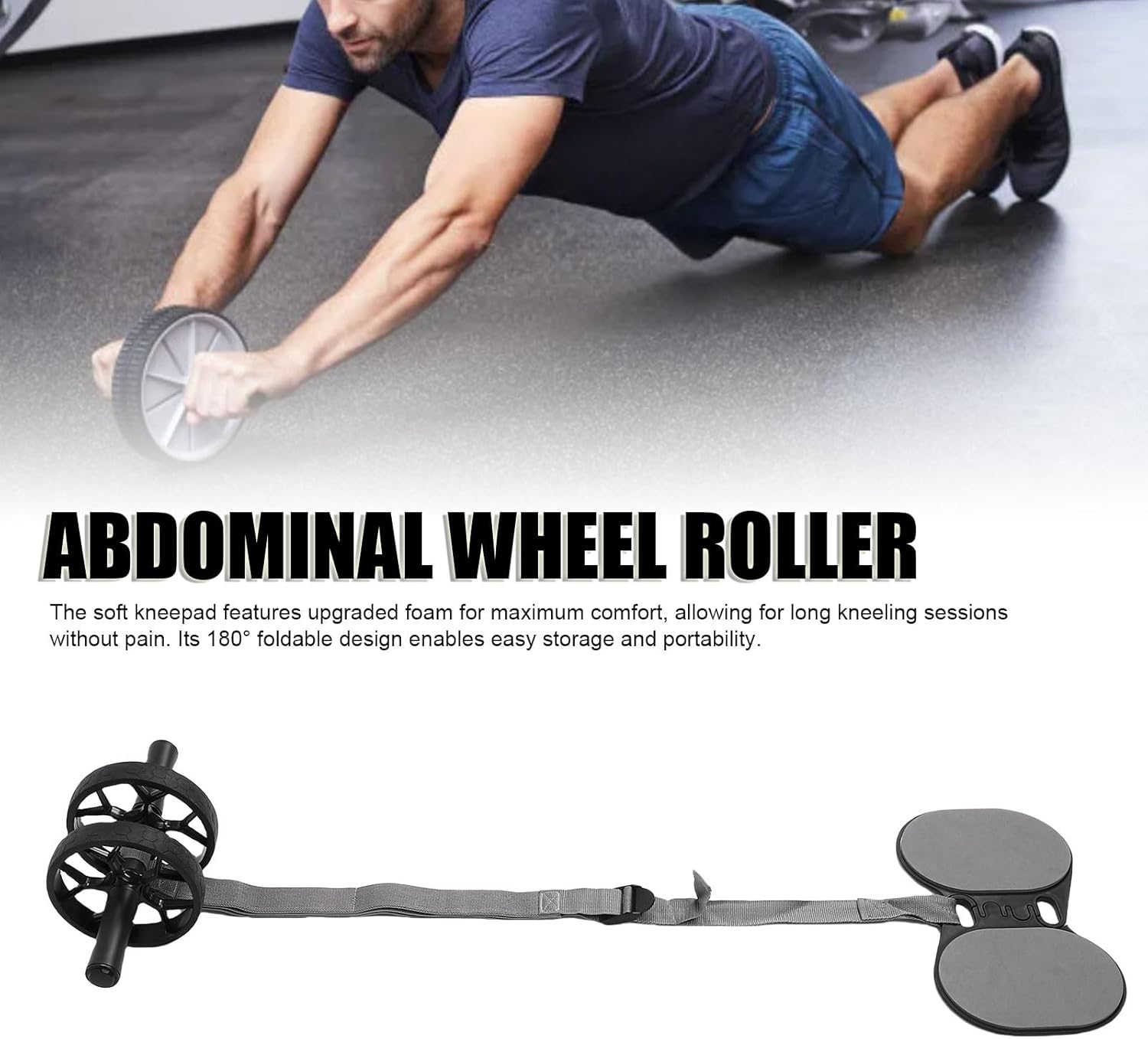 POENVFPO Rodillo de Rueda Abdominal con Resiliencia Automática, Almohadilla de Rodilla y Correa para Pull, Equipo de Entrenamiento AB de Doble Rueda para el Gimnasio en Casa