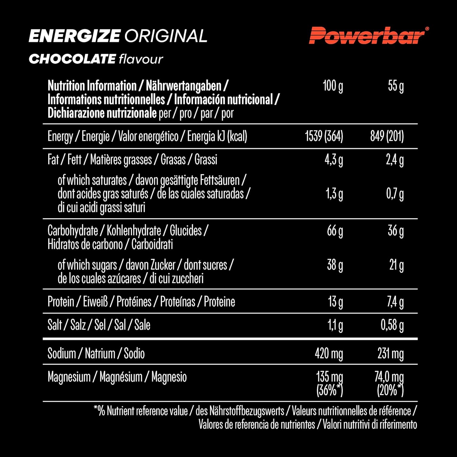 Powerbar Energize Original Chocolate 15x55g – High Carb Energy Bar + C2MAX Magnesium and Sodium