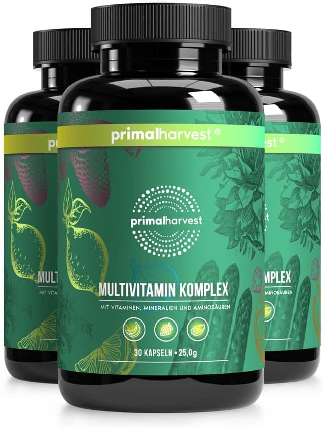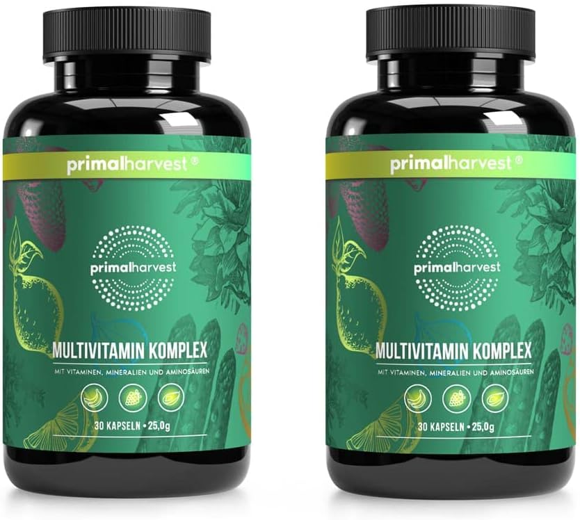 Product delivered: 1 x Primal Harvest Multivitamin, a nutritional supplement with 21 vitamins and minerals. May contain traces of gluten, crustaceans, eggs, fish, soy, milk, nuts and lupins; 30 capsules