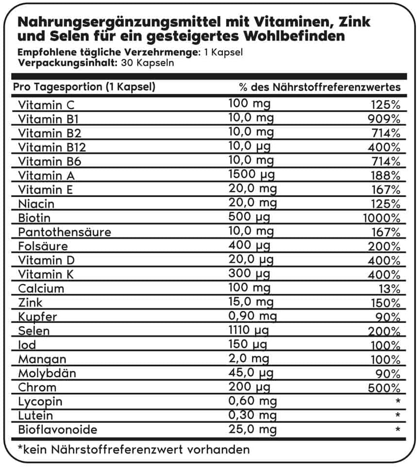 HELPS BOOST YOUR DAY – Formulated with 21 essential vitamins and minerals, plus Zinc and Biotin, to help boost energy and endurance, improve mood and support your overall wellness.