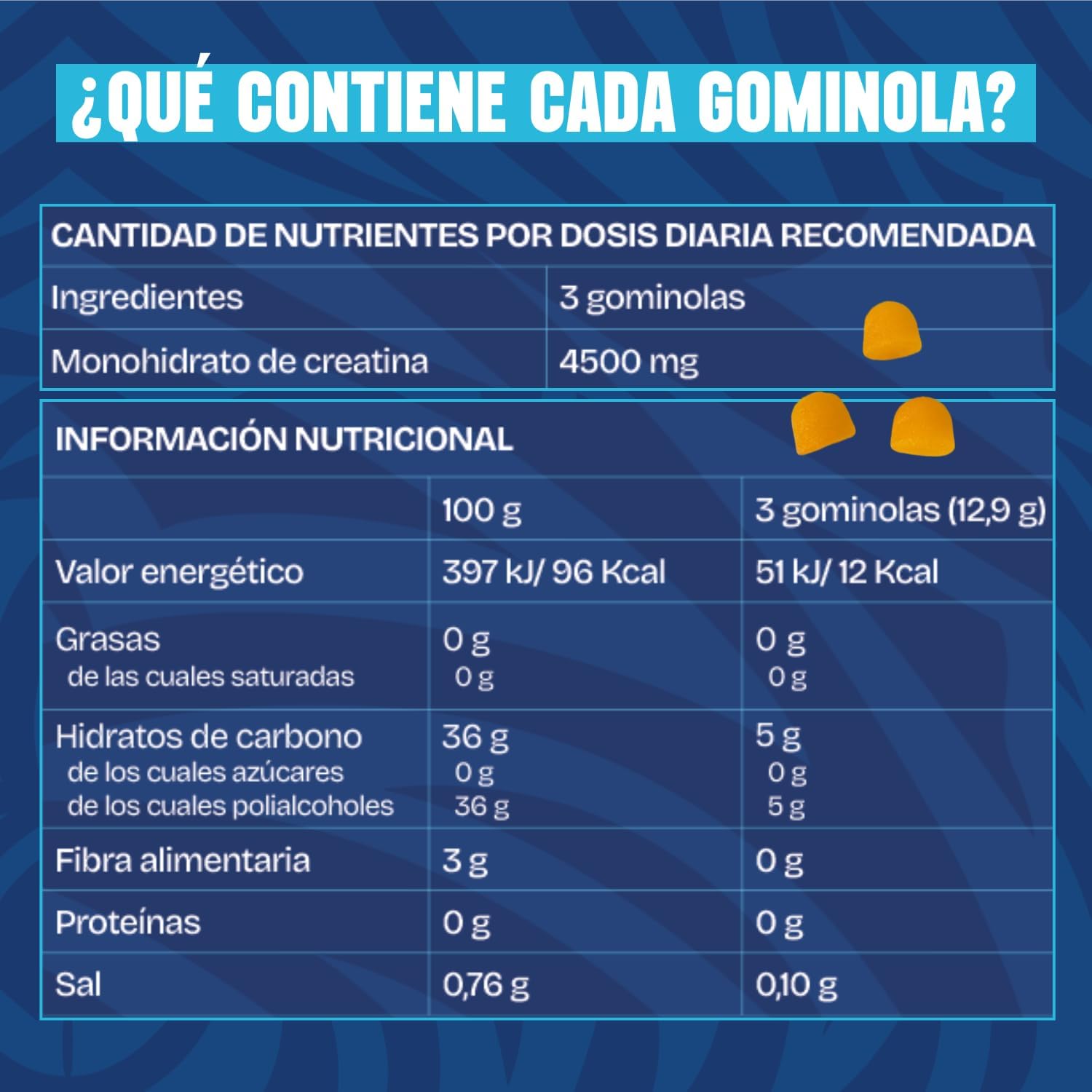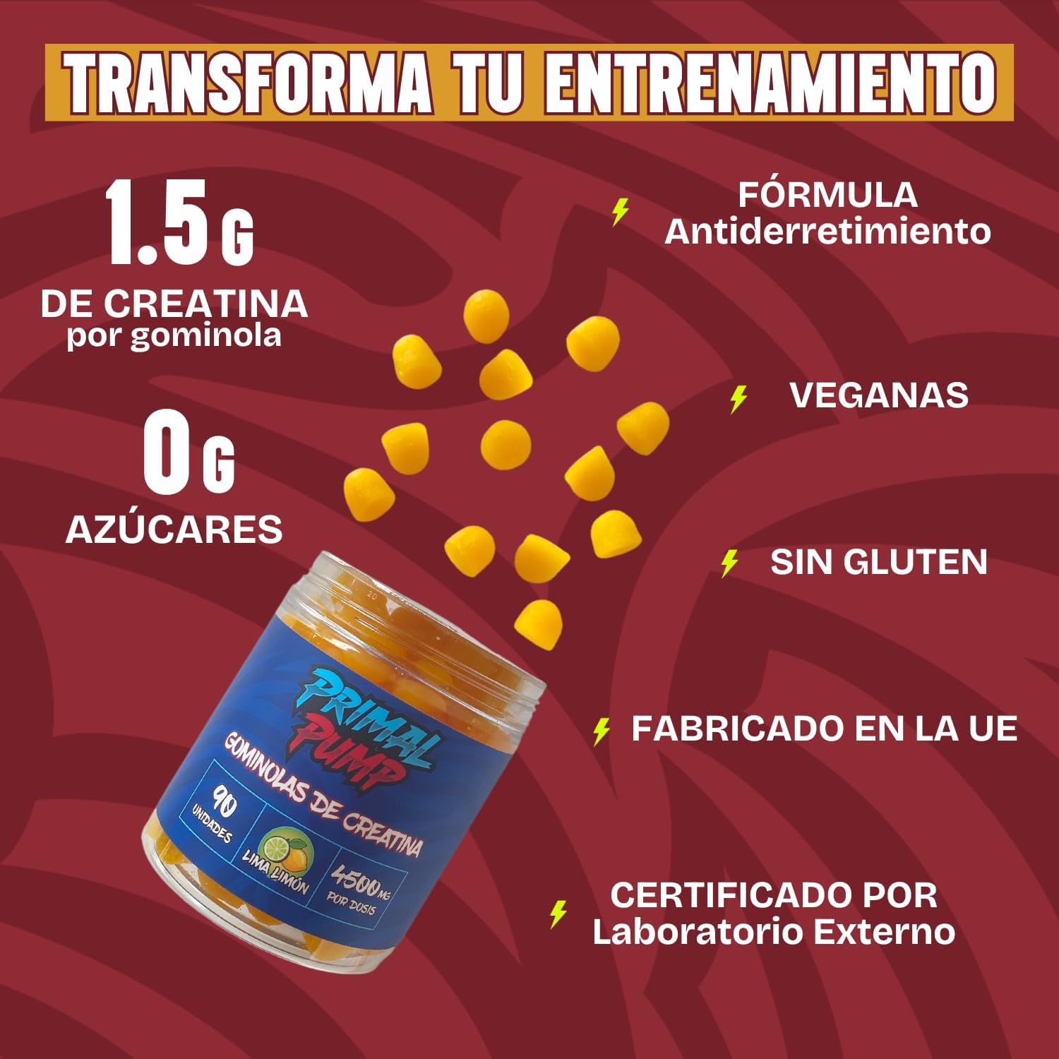 ENERGY AND RECOVERY. These creatine gummies provide you with energy to train longer and at higher intensity. Creatine monohydrate also promotes faster recovery, reducing muscle fatigue and preparing you for the next workout.