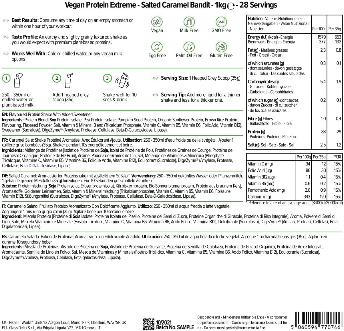 Protein Works – Extreme Vegan Protein – 100% Plant Based – 5 Protein Blend – Plant Protein Powder – 28 Smoothies – Salted Caramel – 1kg