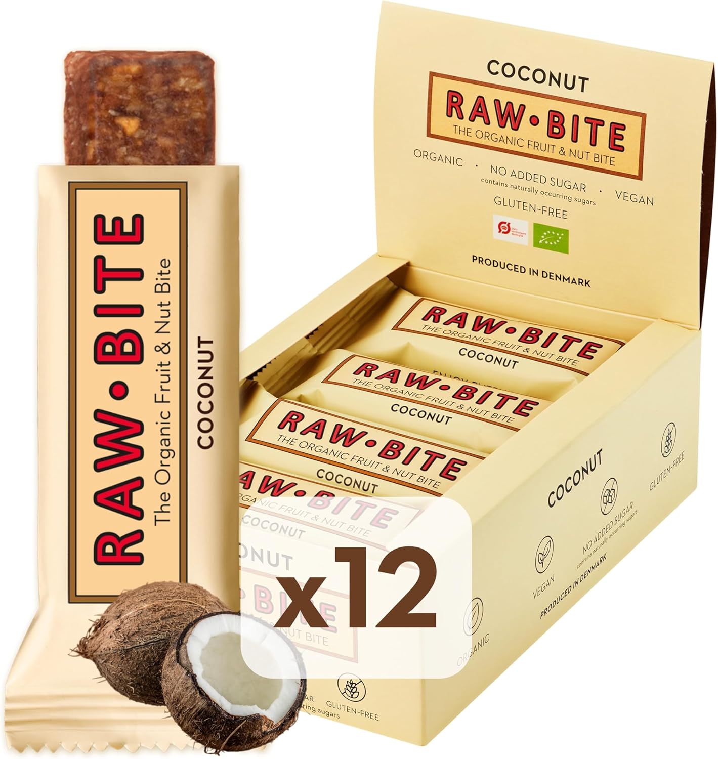 Raw Bite Coconut Energy Bar Energetic, natural and no sugar. Raw Bite bars are raw vegan and made from organic fruits and nuts. No added sugar, dairy free and gluten free. Consistent energy with incredible taste.
