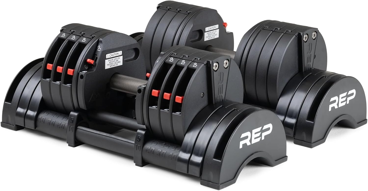 Rep Fitness Quickdraw Adjustable Dumbbells, Multiple Weight Ranges Available Including 5-30, 5-40, 5-50 & 5-60 lbs