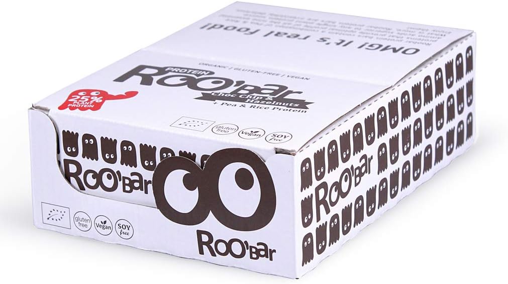 Roobar Choc Chip & Vanilla 100% Organic Raw Vegan Protein Bar for Optimum Nutrition. Dairy & Gluten Free – 10 x 60g Protein Bars