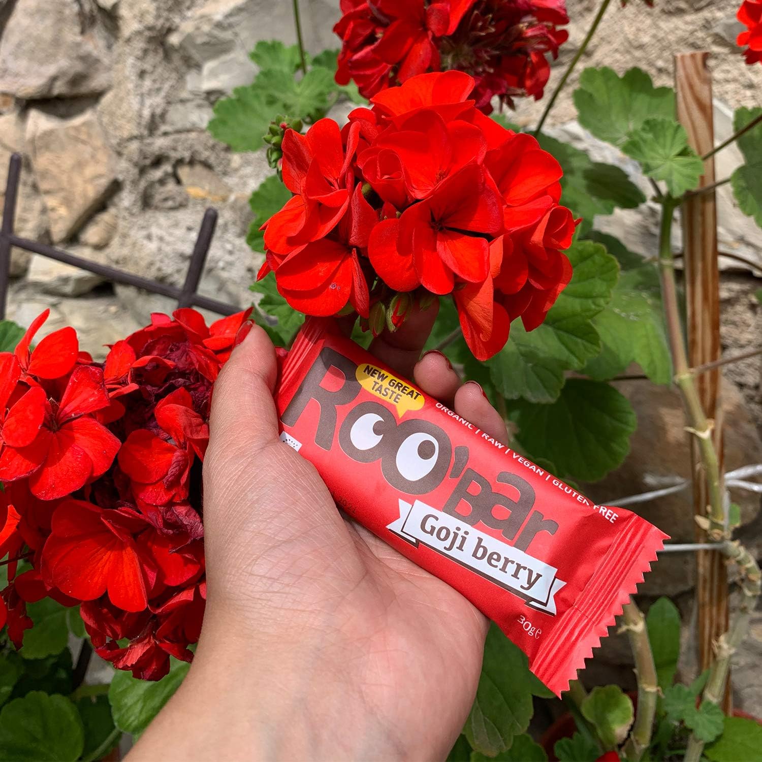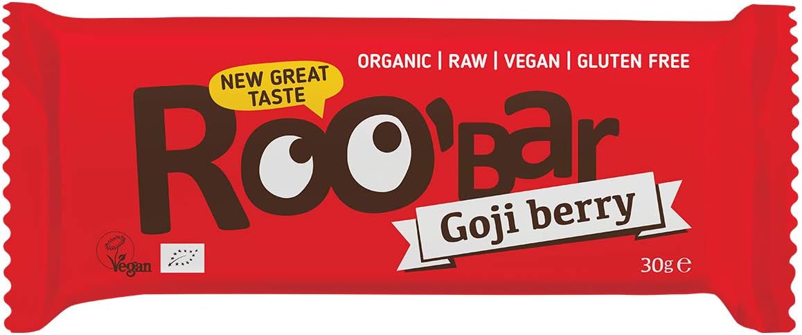 Roobar Goji Berry Raw Bar – Dairy & Gluten Free. 100% Organic, Vegan with Superfoods for Optimum Nutrition. No Added Refined Sugar – 12 x 30g Raw Bars