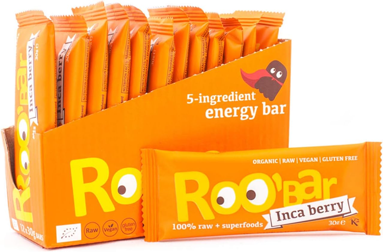 Roobar Inca Berry Raw Bar – Dairy & Gluten Free. 100% Organic, Vegan with Superfoods for Optimum Nutrition. No Added Refined Sugar – 12x 30g Raw Bars