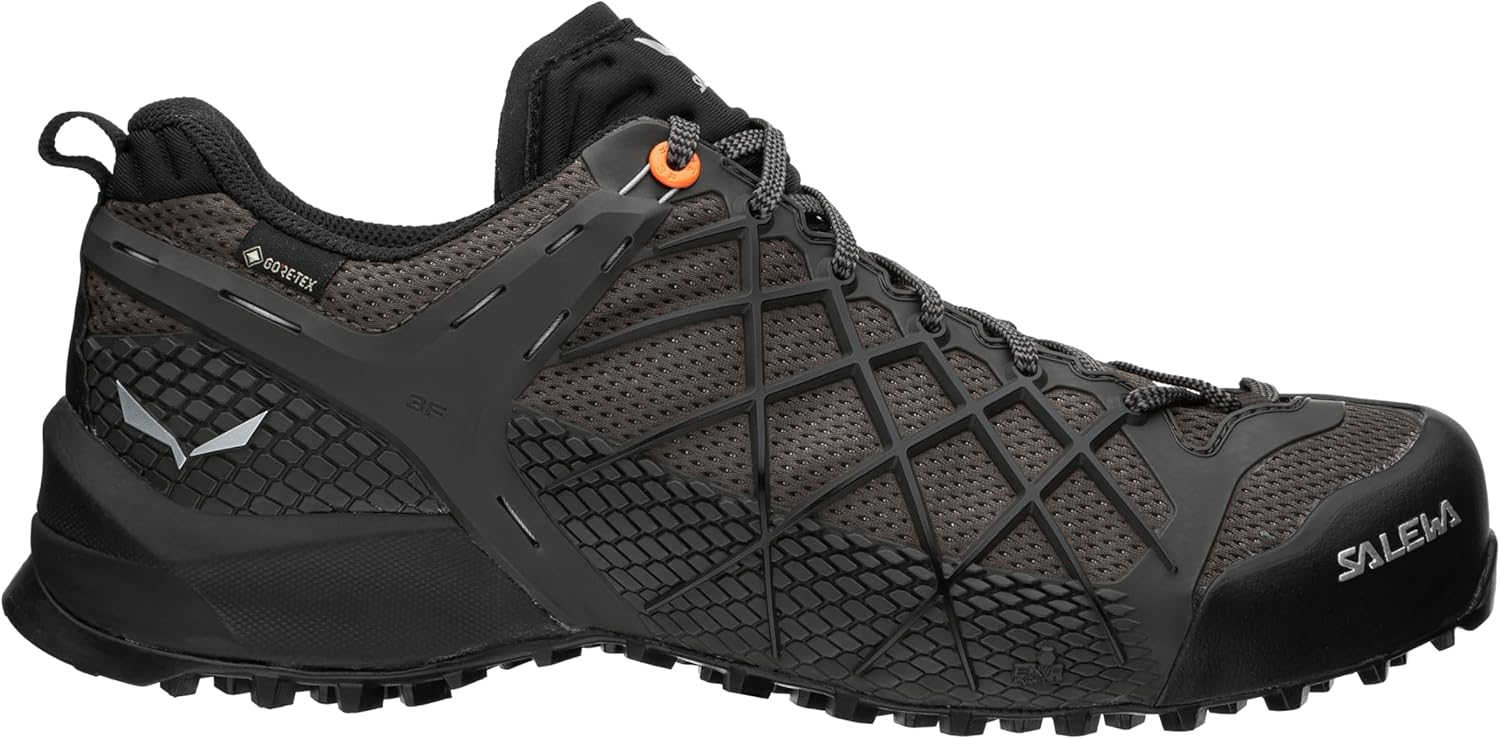 The Mountain Trainer Mid GTX is a lightweight trekking shoe made of durable leather and abrasion-resistant textile material with a waterproof and breathable GORE-TEX coating. These shoes meet the most demanding requirements of mountain ascents and descents, both on mixed terrain and on technical terrain. To do this, the Mountain Trainer Mid GTX features an innovative outsole with Bilight technology. It has 2 layers, offers great cushioning and has an ergonomic shape for great support and comfort even on long hikes. In the ankle area, the Flex Collar system increases freedom of movement in the back and therefore comfort during ascents, even if the backpack is heavy. The lightweight and non-slip Vibram Wrapping Thread Combi (WTC) sole ensures a feeling of stability but at the same time very natural when walking. The SALEWA patented 3F system offers more flexibility, optimal support in the heel area and prevents blisters. The GORE-TEX Performance Comfort coating provides optimal weather protection and great climate comfort.