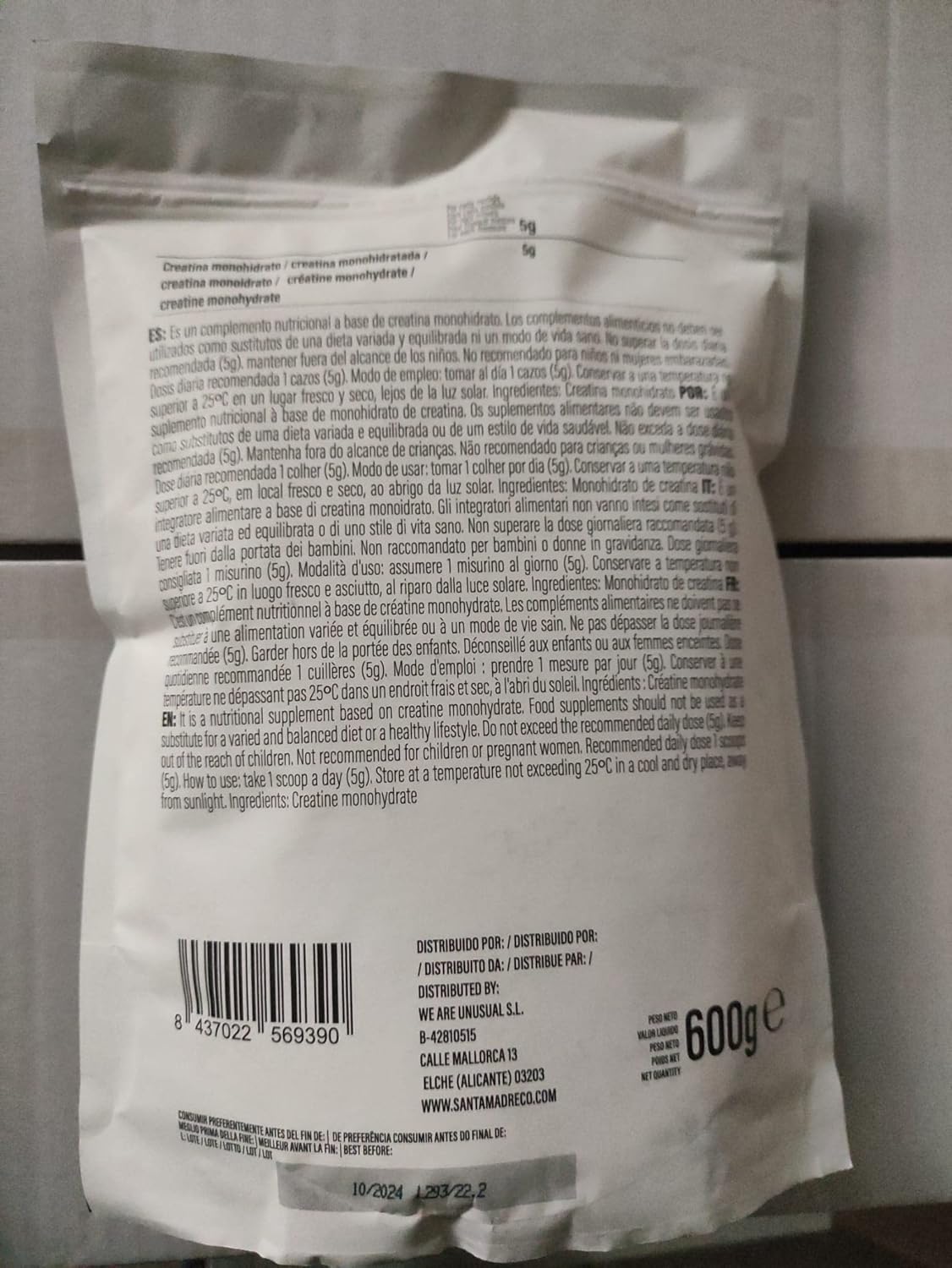 SANTA MADRE | PURE CREATINE MONOHYDRATE | Neutral Flavor | Creatine Drink | Increases Performance in Strength Sports | Sports Supplement | Increase Strength and Muscle Mass (600)