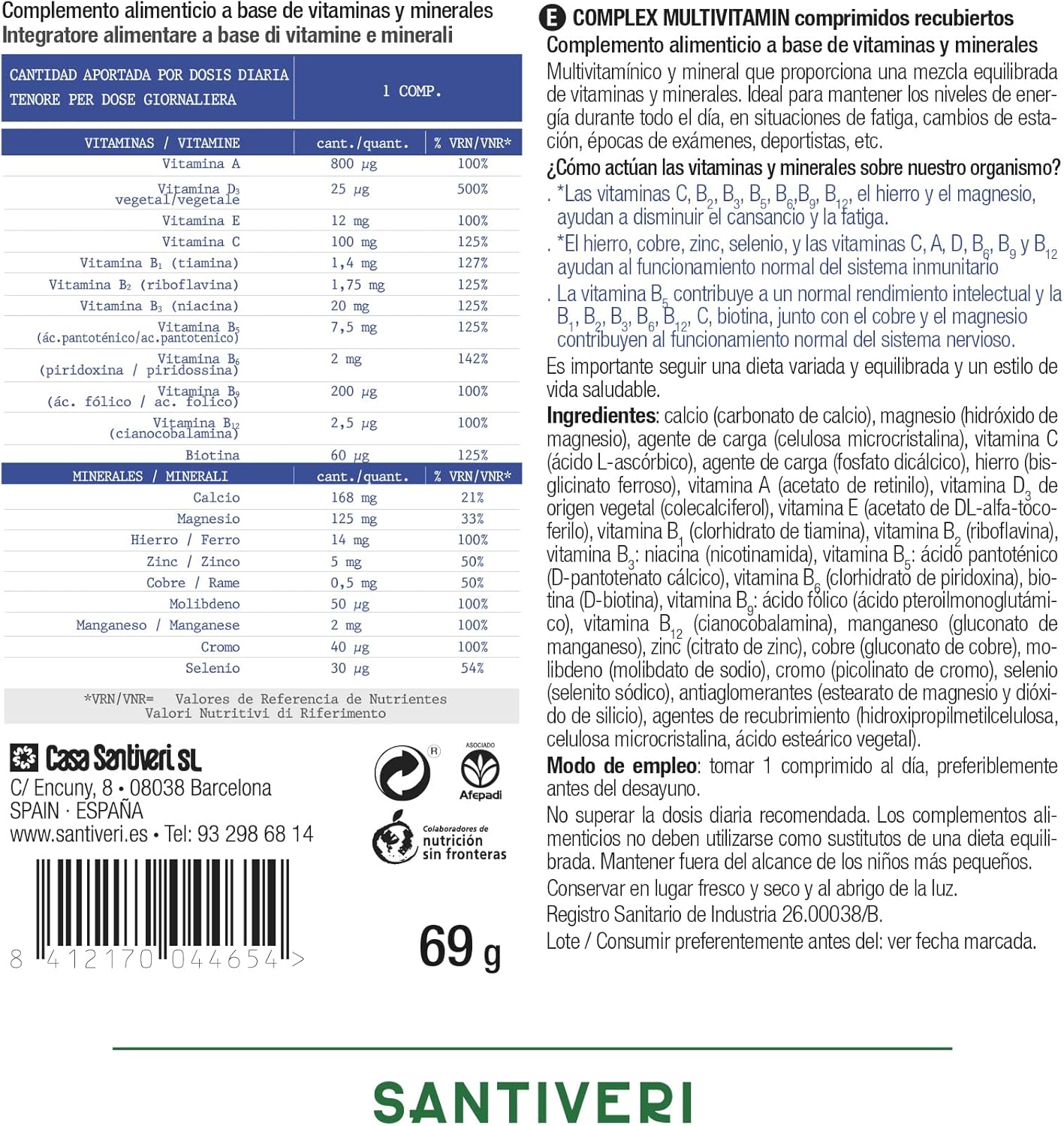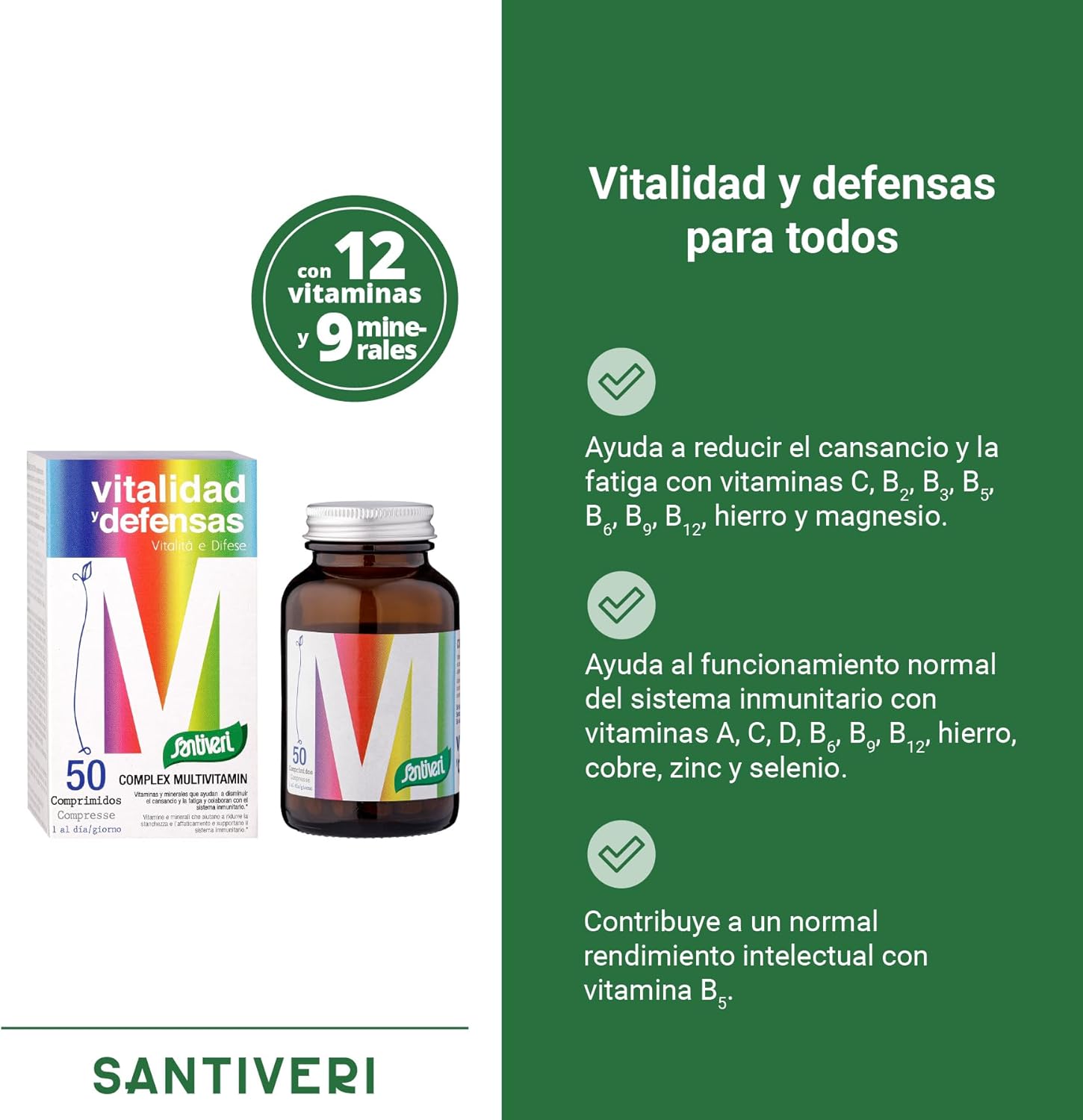 [Complex Multivitamin] Complete vitamin and mineral complex to maintain energy levels and defenses throughout the day, as well as control fatigue during the changing seasons, in times of exams or if you are an athlete. This supplement is vegan, and contains no gluten, lactose, nuts, eggs, or soy
