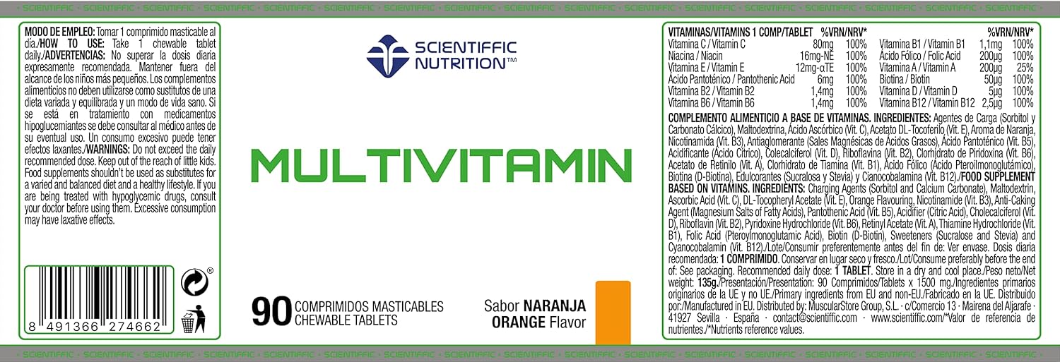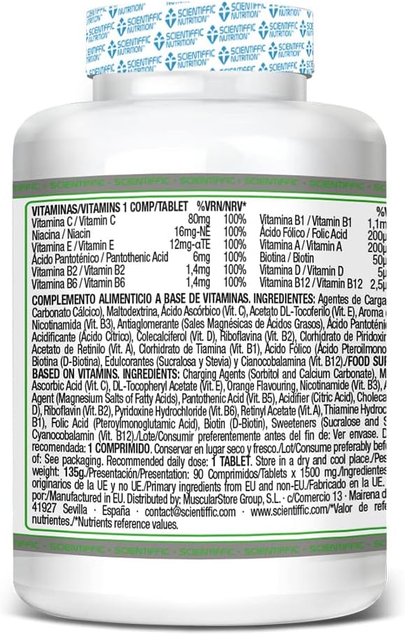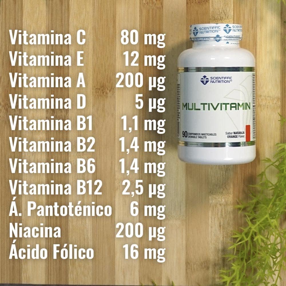 COMPOSITION: Chewable tablets formulated based on 12 of the main vitamins among which we can find vitamin A, B1, B2, B6, B12, C, D or E, also has folic acid, biotin and niacin among others.