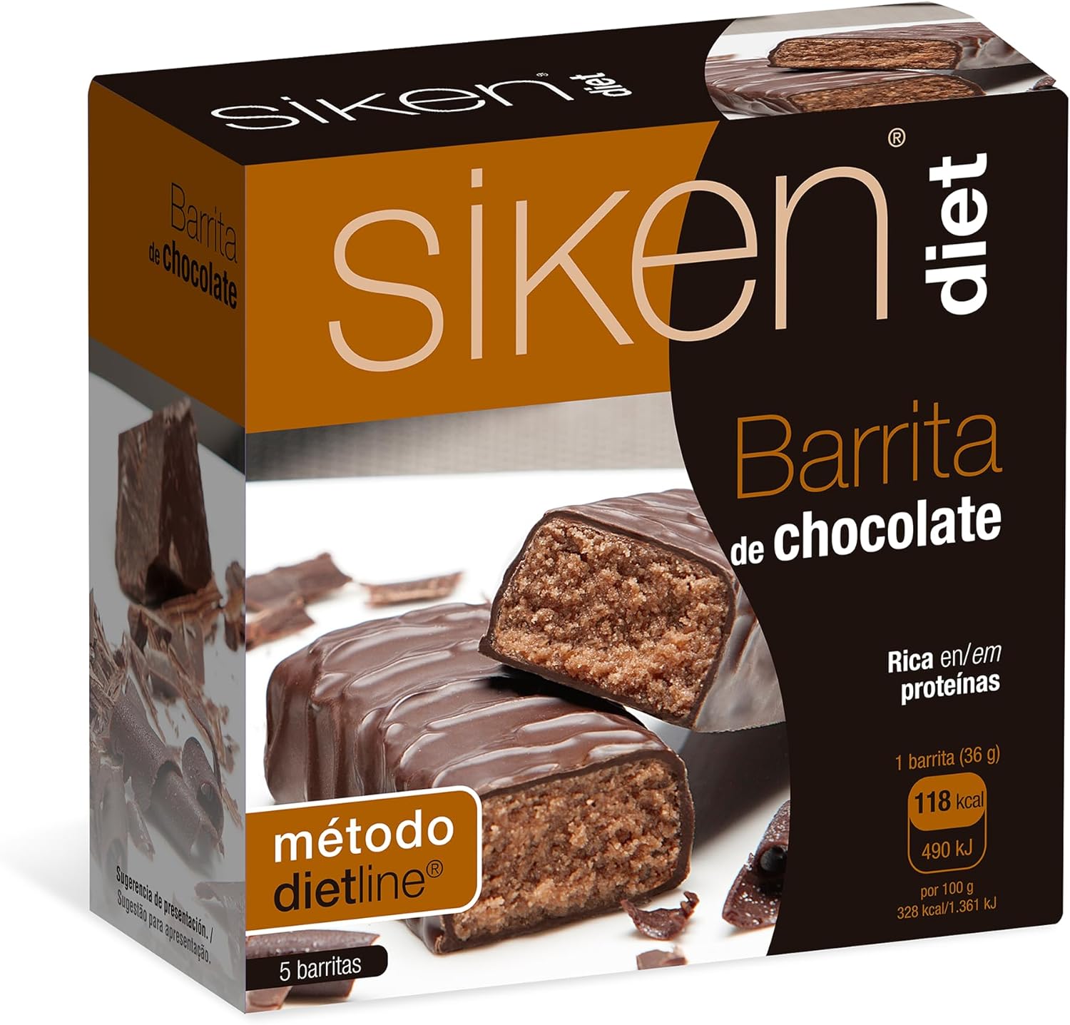 Siken Diet Chocolate Flavor Bar with Protein to Help Control Your Weight – Case with 5 Bars of 36 g, 180 g