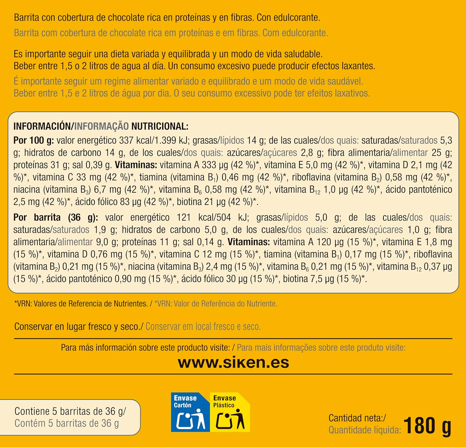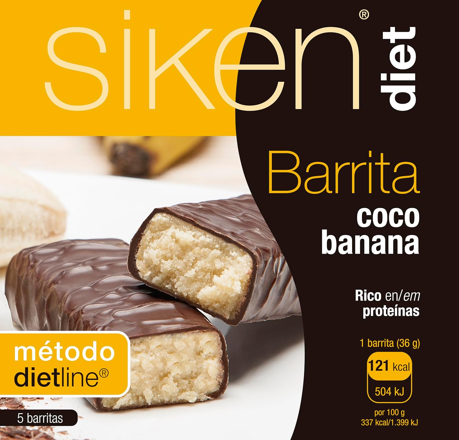 Siken Diet – Coconut and Banana Flavor Bar with Protein and Low Calorie to Control Your Weight – Case of 5 Units, 180 g