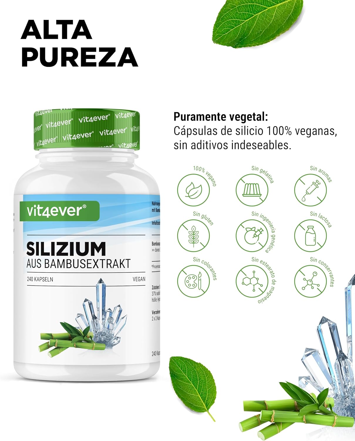 PURE AND NATURAL, OBTAINED FROM BAMBOO Sprouts: Our extract comes from Bambusa vulgaris and contains 37% natural silicon. Careful extraction preserves the full spectrum of plant effects, without chemical additives.
