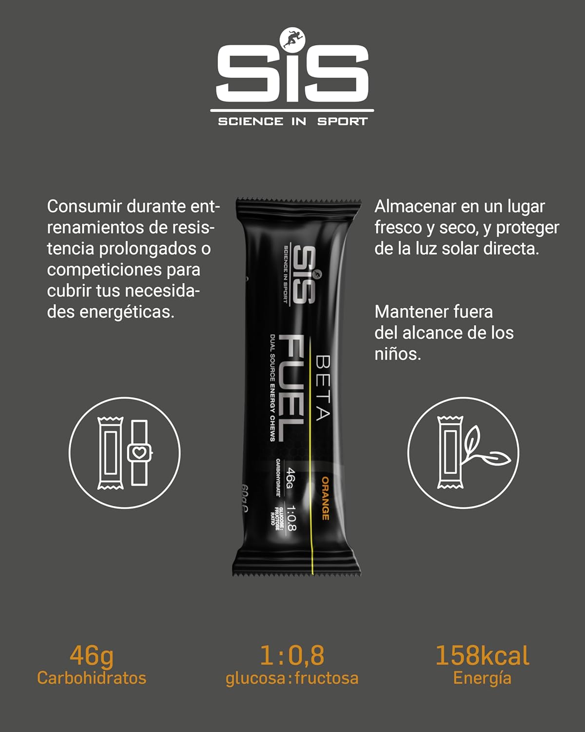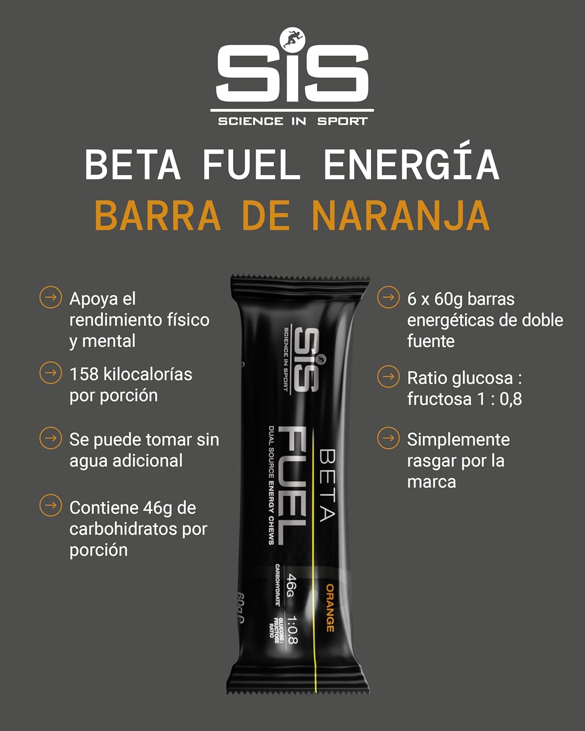SiS Beta Fuel Barritas Energéticas para Deportistas con 46 g de Carbohidratos, 6 Unidades x 60g, Sabor Naranja