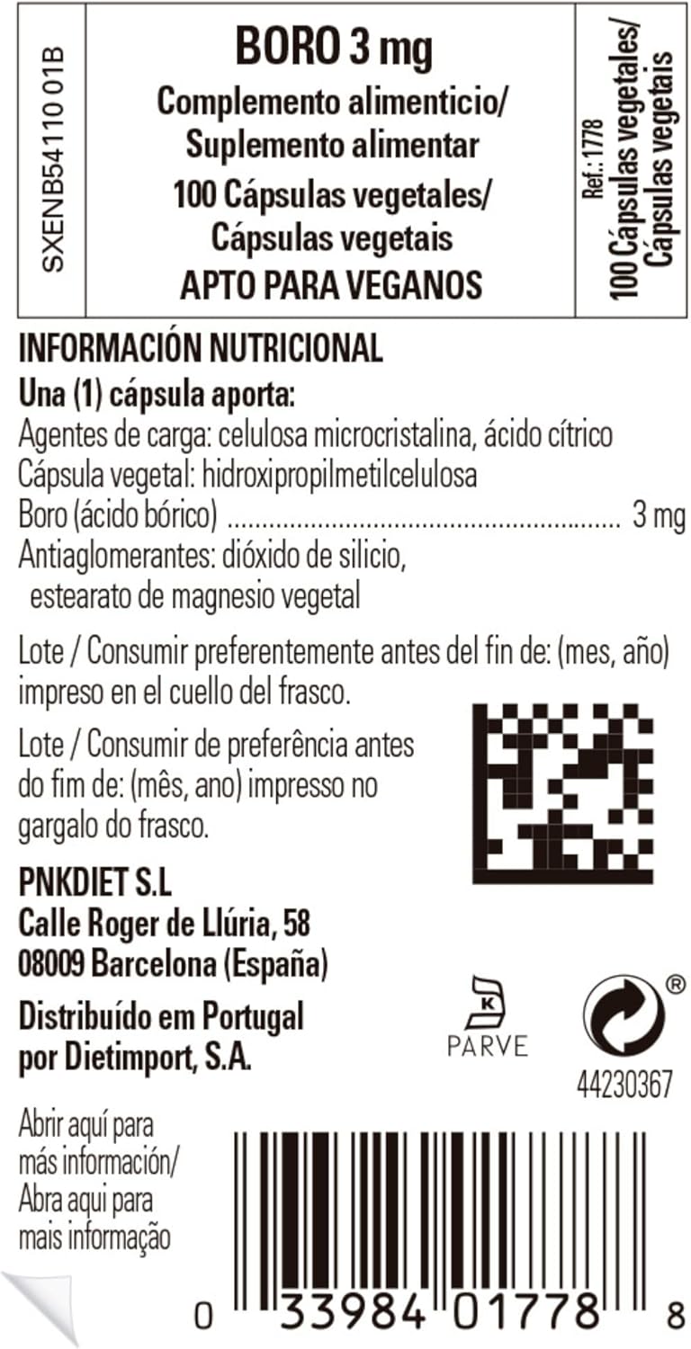 INGREDIENTS: Boron, bulking agents: microcrystalline cellulose, citric acid; anti-caking agents: silicon dioxide, vegetable magnesium stearate; vegetable capsule: hydroxypropylmethylcellulose.