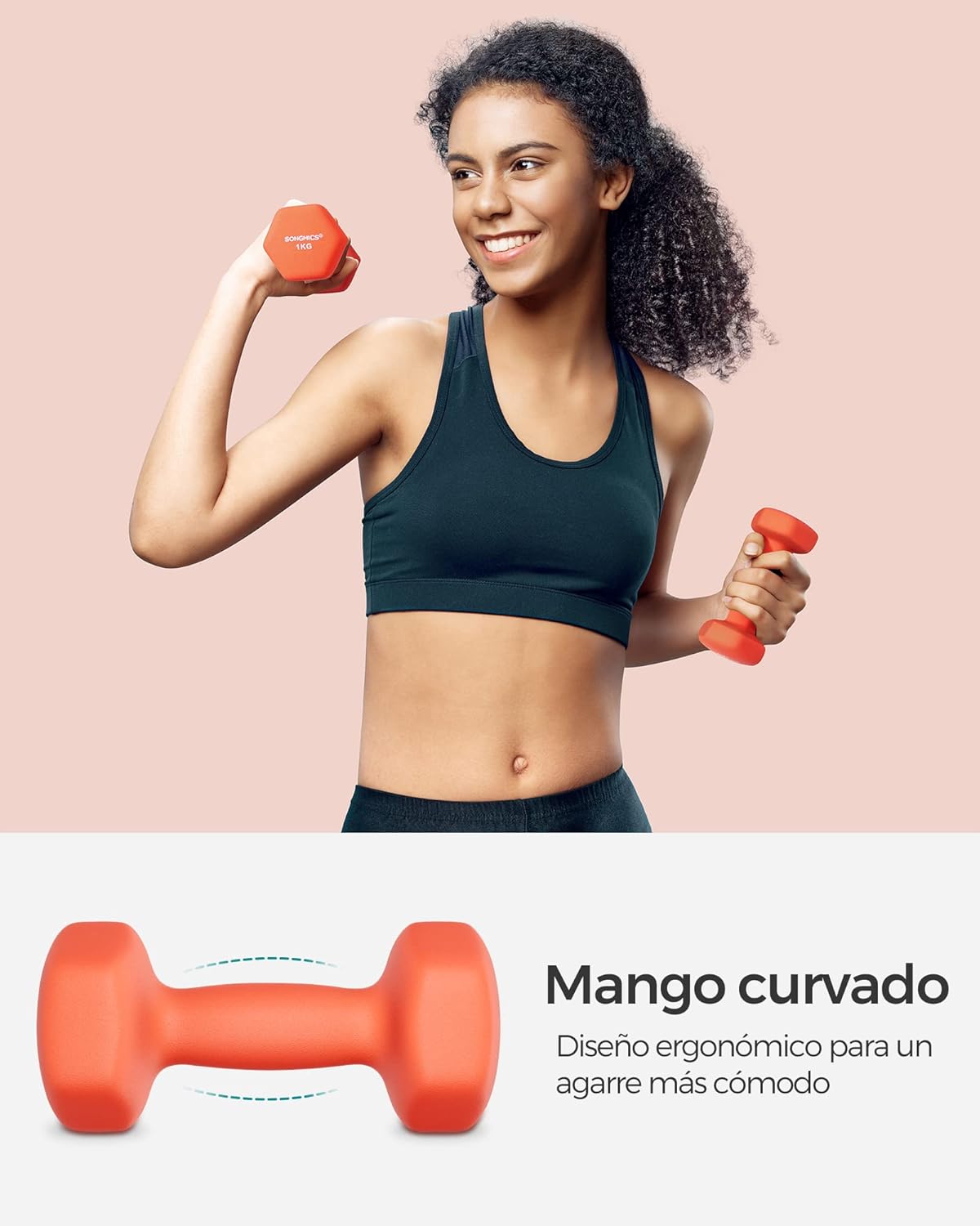 【COMFORTABLE GRIP】This dumbbell has a curved handle with a length of 9 cm, which meets ergonomic requirements, and the frosted surface is gentle on the skin and not easy to slip even if you sweat