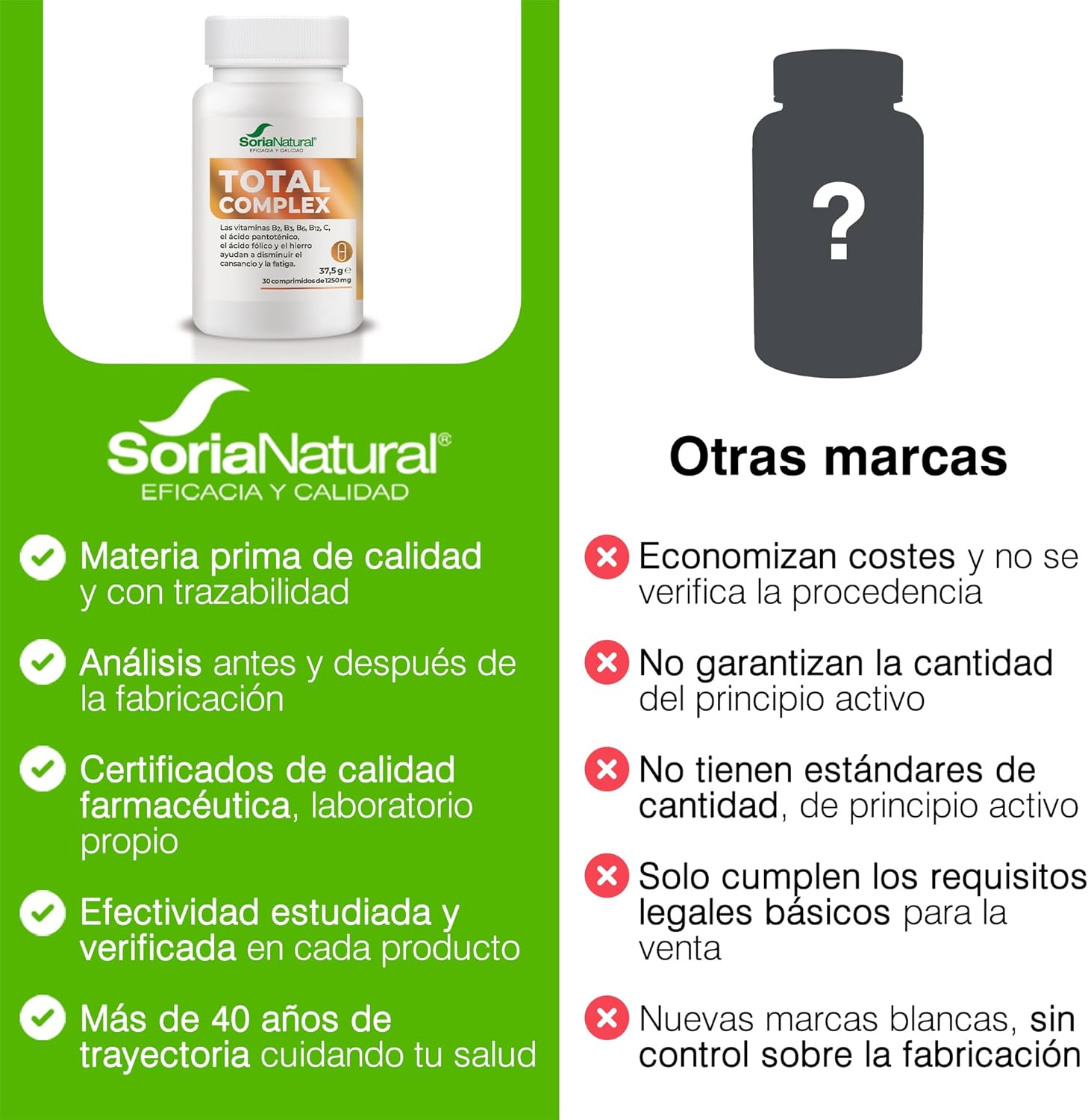 Made in Spain: Formulated by Soria Natural, a brand recognized for its commitment to the quality and effectiveness of its products, you can trust Total Complex to meet your daily nutritional needs with complete confidence.