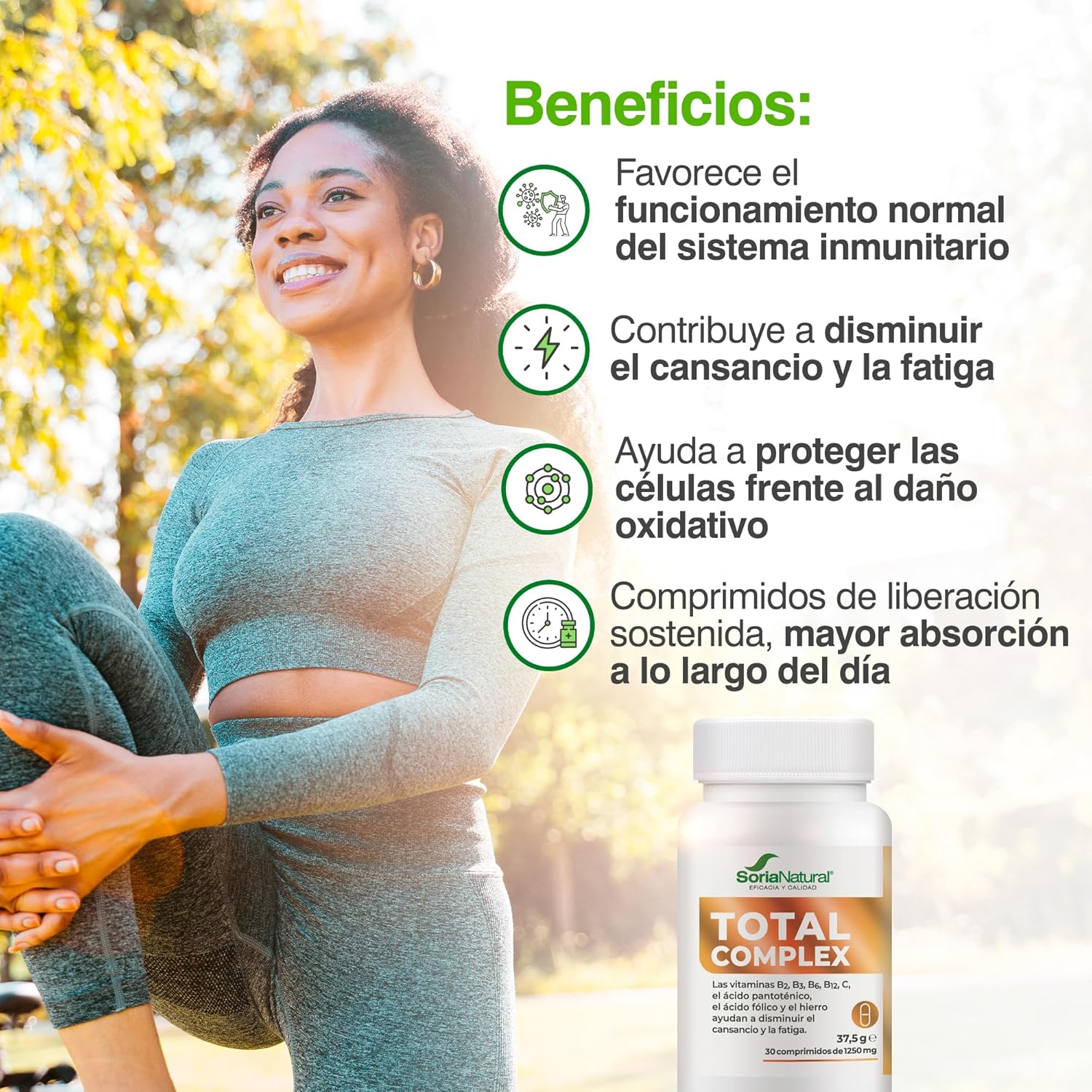 Overall Wellness – Soria Natural Total Complex is a multivitamin designed to promote the overall well-being of the adult, providing a balanced combination of essential vitamins and minerals for the body.