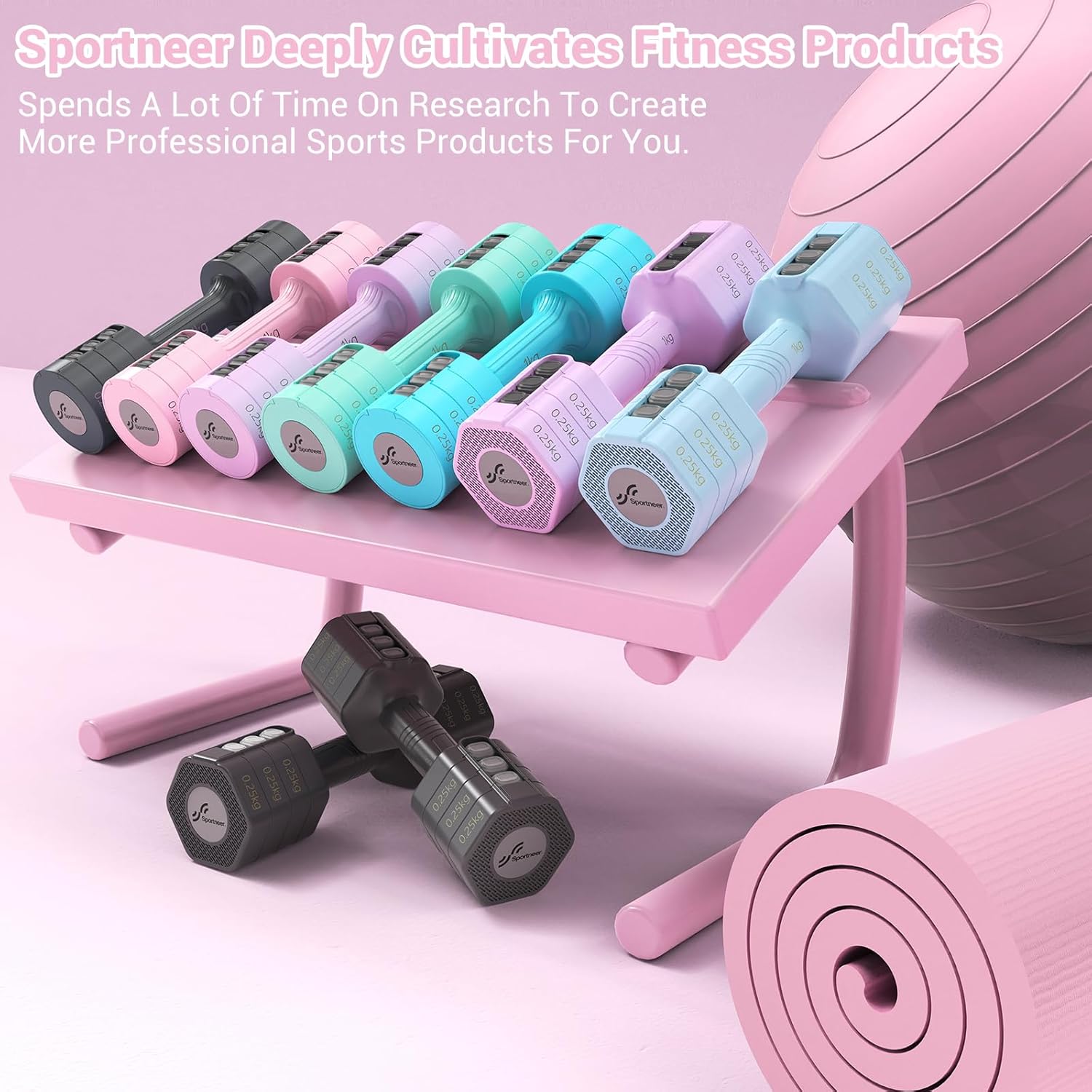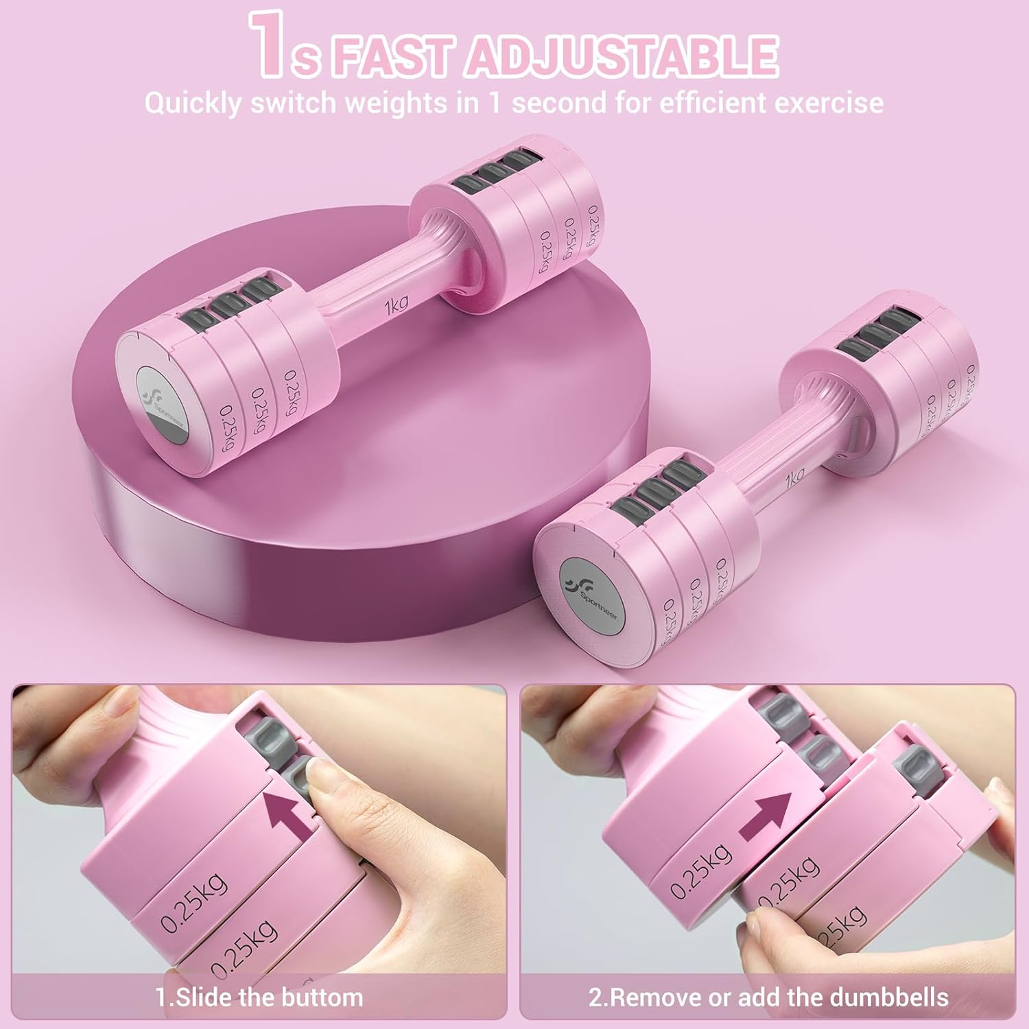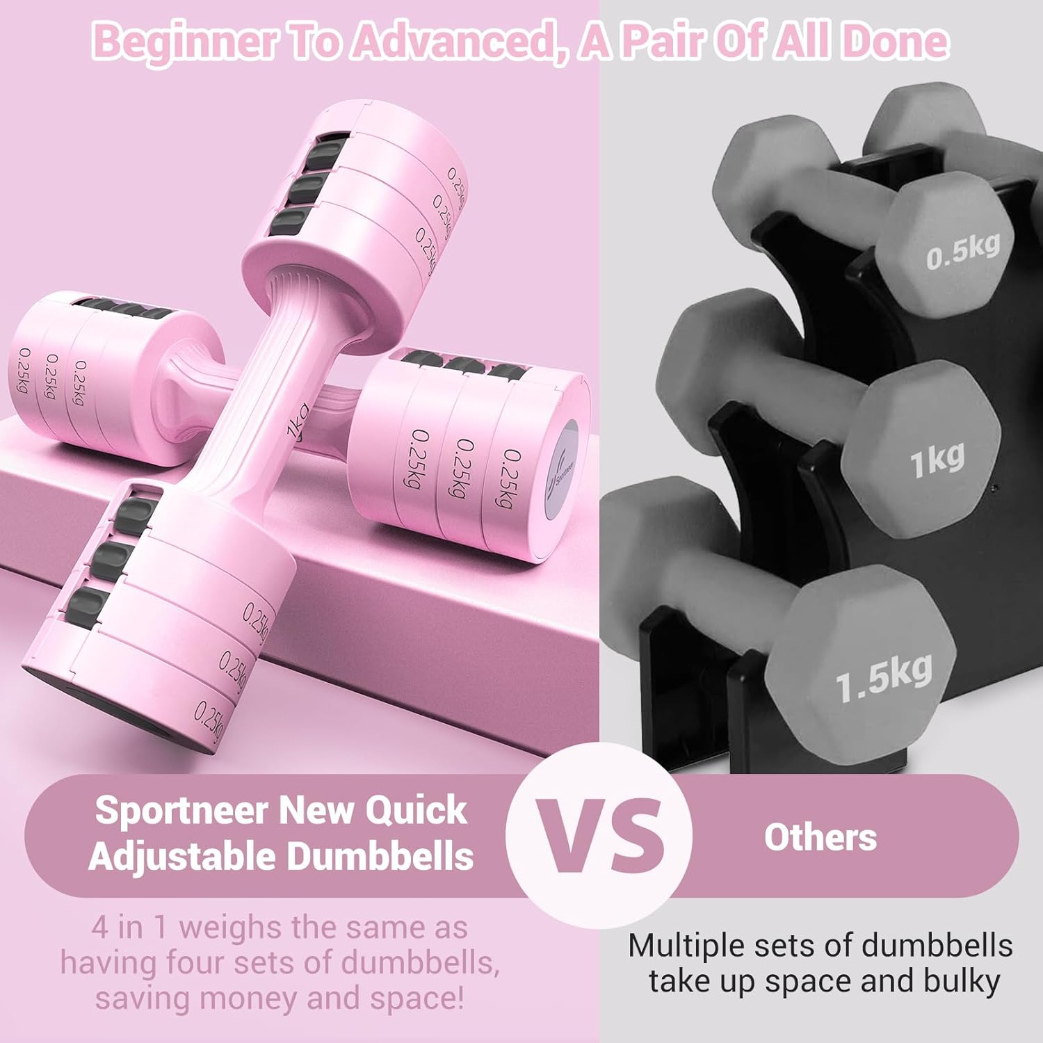 Sportneer Adjustable Dumbbells Set for Women – 2 Pcs 2-5kg Dumbbells (1-2.5kg Each) 4 in 1 Adjustable Dumbbells Set Fitness Equipment for Home Gym Workout