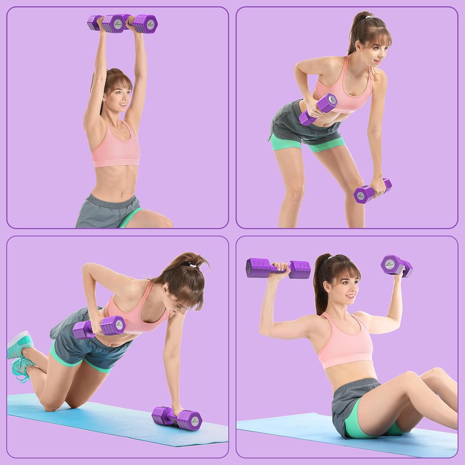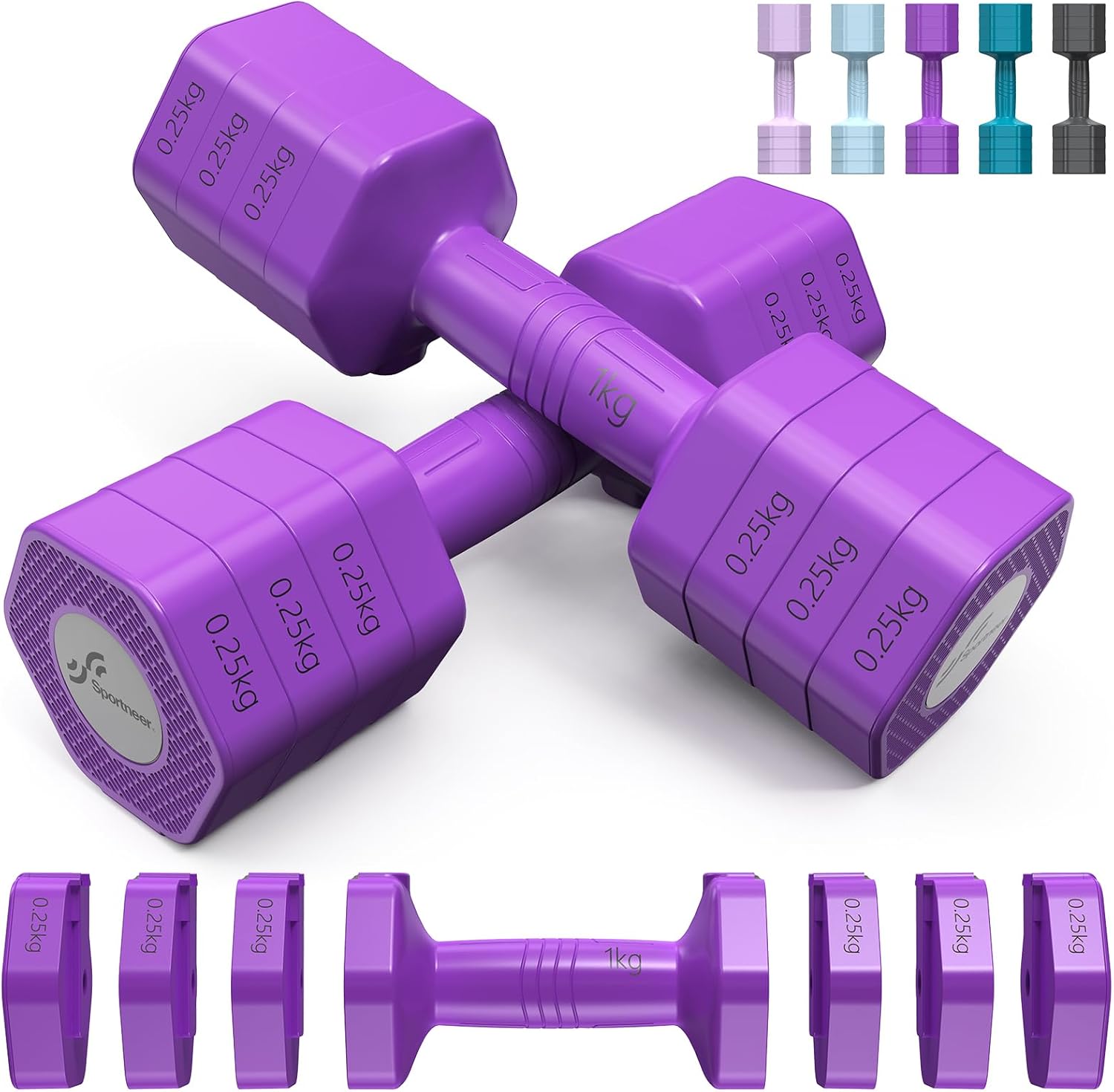 Sportneer Adjustable Dumbbells Set for Women: each 1kg/1.5kg/2kg/2.5kg, 4 in 1 dumbbell set, dumbbells for women, pair of adjustable dumbbells for home gym