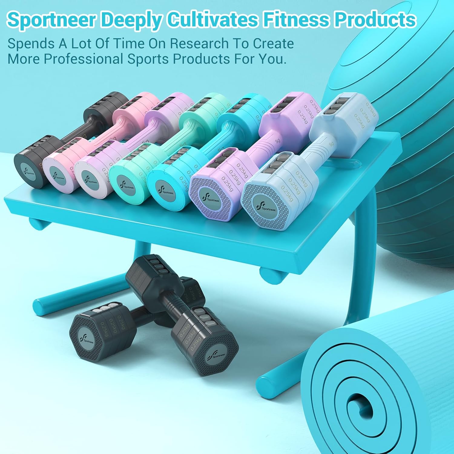 The Sportneer adjustable dumbbell set allows 4-in-1 weight adjustment, in which each dumbbell is equipped with 6 weight plates of 0.25 kg. Effortlessly adjust the weight between 1kg, 1.5kg, 2kg and 2.5kg, ideal for beginners and advanced. Our adjustable dumbbells are the only ones on the market that offer accurate 0.25kg steps with printed numbers so you can plan your training sessions accurately. Thanks to the innovative push-button clamp design, the Sportneer 2 pack dumbbells can be quickly adjusted. Whether you want to combine different exercises or quickly change weights, this function saves time and increases the efficiency of your workout. This sophisticated dumbbell set for women is also an excellent gift for fitness enthusiasts, friends and family. The compact design of these Sportneer adjustable dumbbells not only makes them space-saving, but also easy to carry. With this adjustable set you will save money and space, as additional dumbbells or dumbbell holders will be superfluous. Ideal for use at home or in the gym. Our adjustable dumbbells have been developed with a focus on quality and safety. The sturdy outer shell made of ABS material ensures durability, while the non-slip handles provide maximum comfort and safety during exercise. Whether strength training or fitness exercises, this dumbbell set for women is the ideal choice. Take advantage of the versatile training possibilities of the Sportneer Sportneer a dumbbell set of 2 to train different muscle groups: arms, shoulders, chest, back, waist, buttocks and legs. Perfect for a full body workout that makes you stronger, fitter and healthier. Invest in Sportneer y adjustable dumbbells make your workout more efficient and flexible, anywhere and anytime!