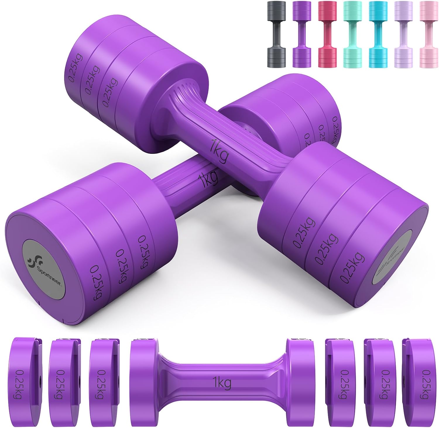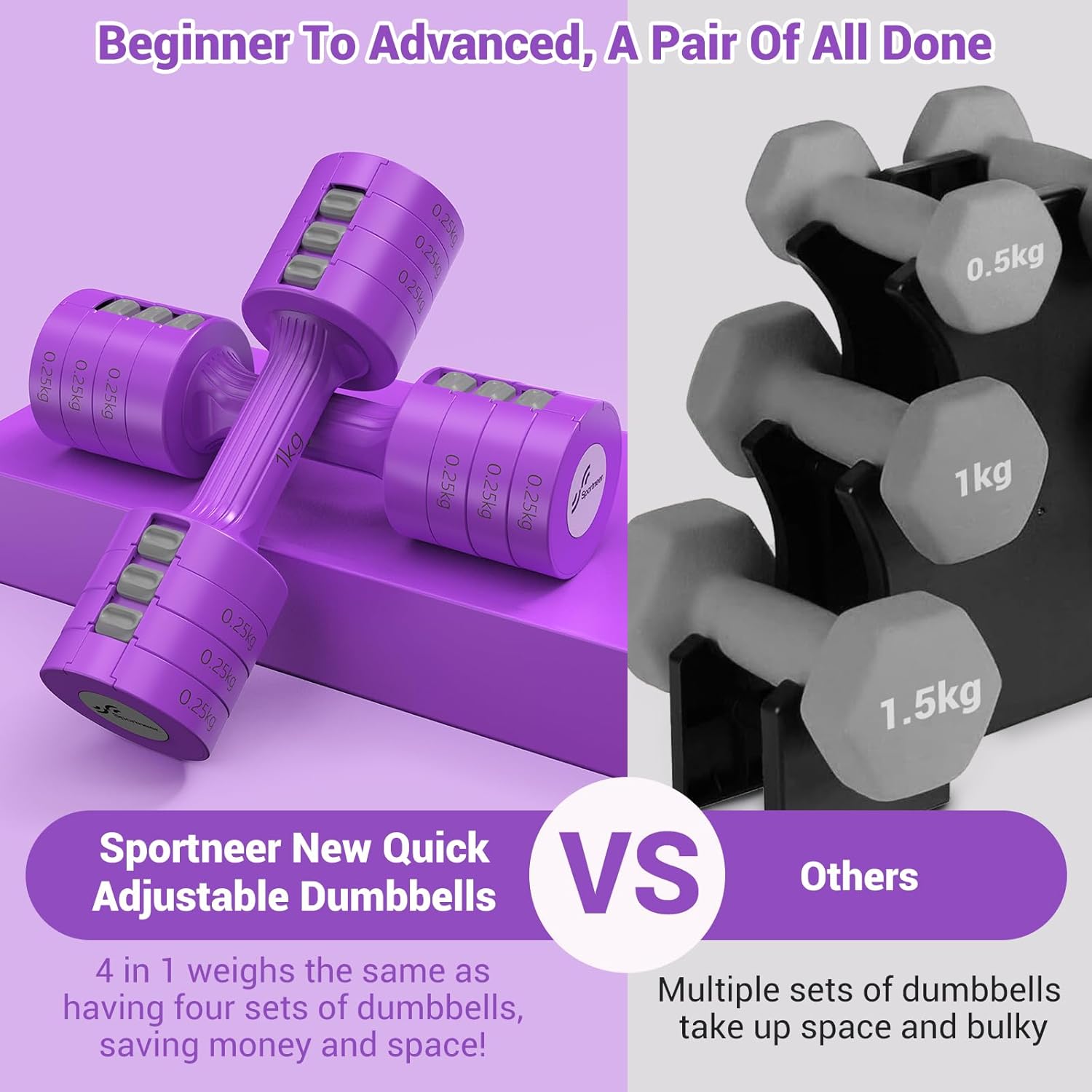 Sportneer Adjustable Dumbbells Set for Women – Set of 2 Dumbbells 1-2.5kg Each, 4 in 1 Adjustable Dumbbell Set, Fitness Gadgets for Home Gym Home Gym Workout