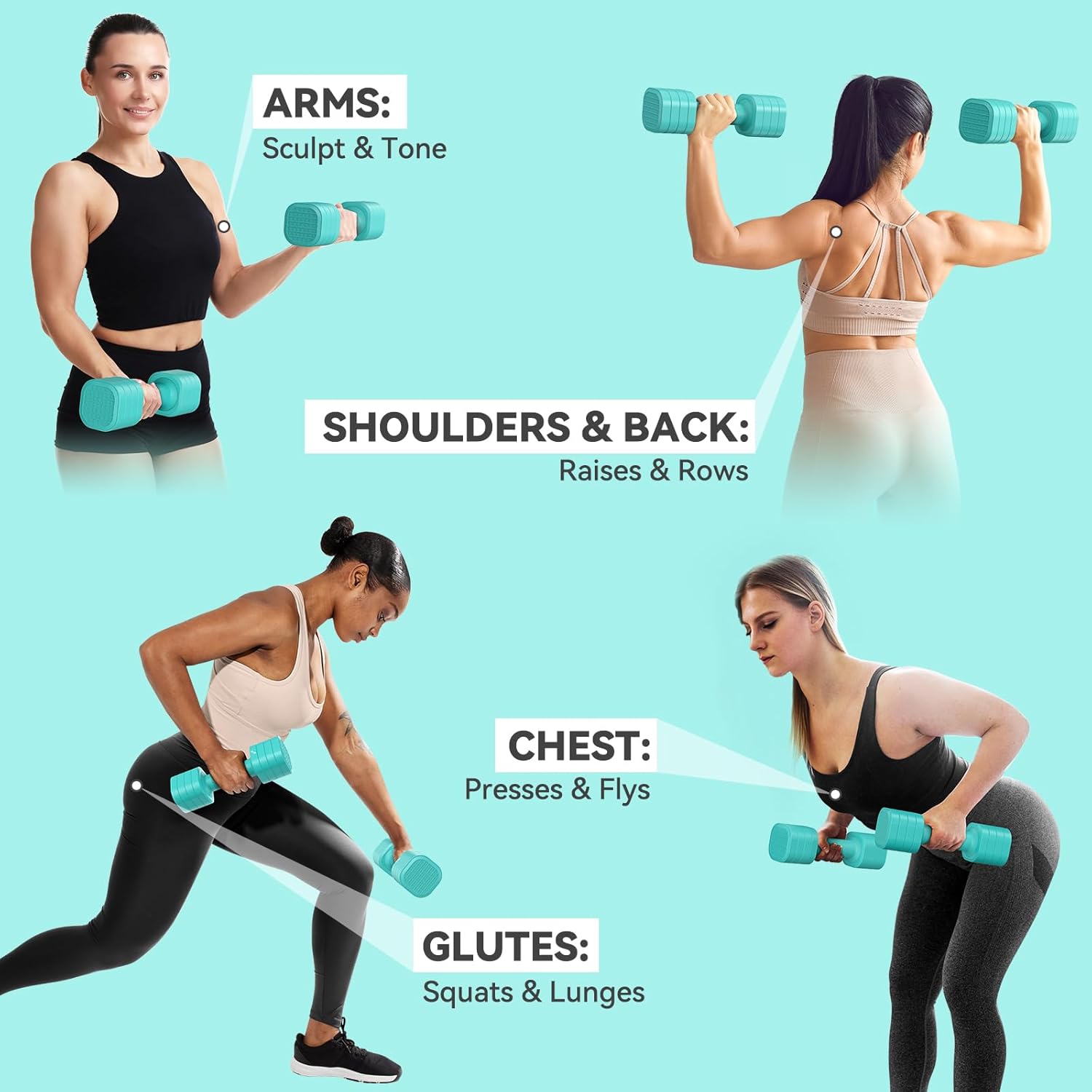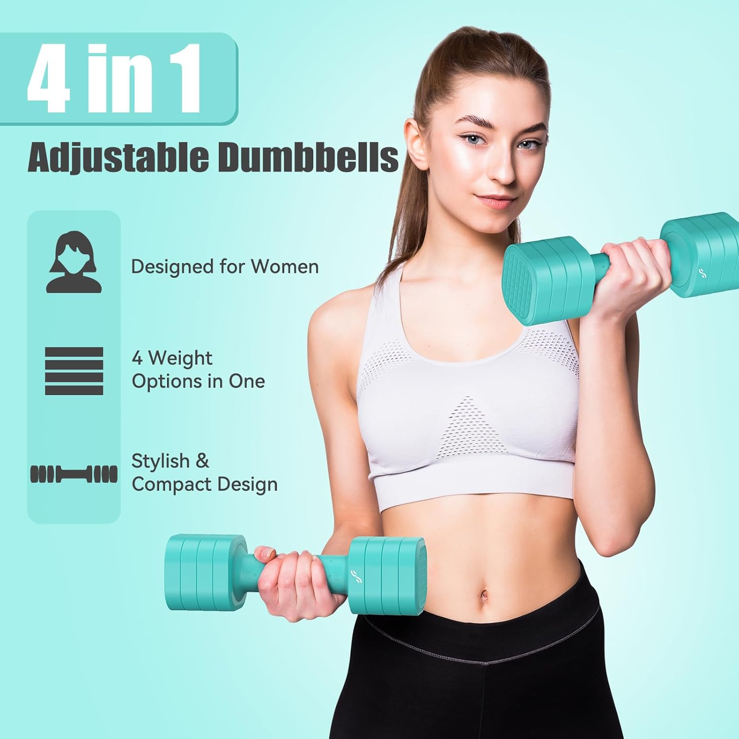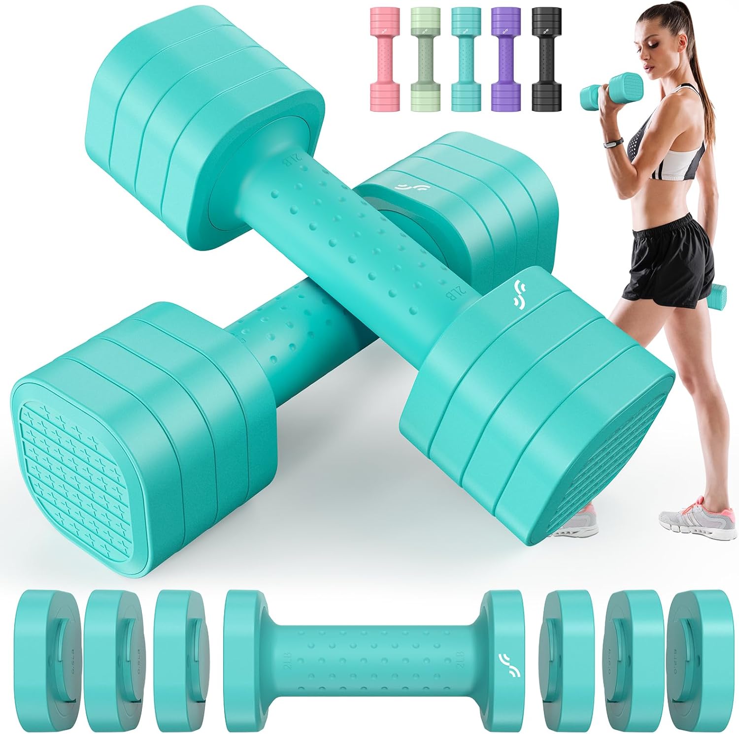 Tired of messy workout spaces or bulky gym equipment? MEET THE PERFECT SOLUTION Sportneer 4-in-1 Adjustable Dumbbell Set for Women. Whether you’re a beginner or upgrading your home gym, these compact dumbbells offer adjustable weights from 2 lbs to 5 lbs per dumbbell (10 lbs per pair), allowing you to tailor your resistance for each exercise. Twist lock design allows for quick weight changes in seconds, no interruption, no time waste. The soft TPU grip ensures comfort and slip resistance, even during intense sessions. With stylish color options and a sleek, space-saving profile, these weights for women bring beauty and functionality to every workout. From arms to core and legs, get a full body burn at home. Great for strength training, toning or gifting to the fitness lover in your life. IMPROVE YOUR FITNESS GAME – Adjust, lift, repeat.