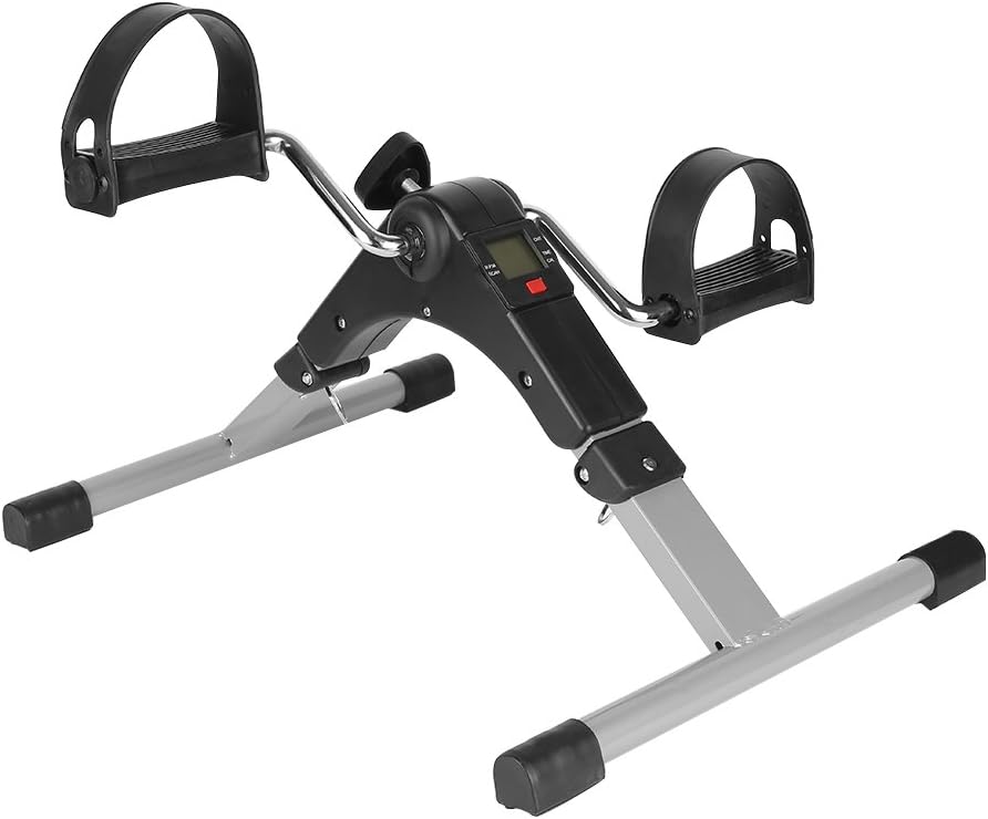 Static Pedals, Mini Folding Exercise Bike, Mini Bike for Arms and Legs Recovery, Pedaling with LCD Monitor, Adjustable Resistance (Silver)