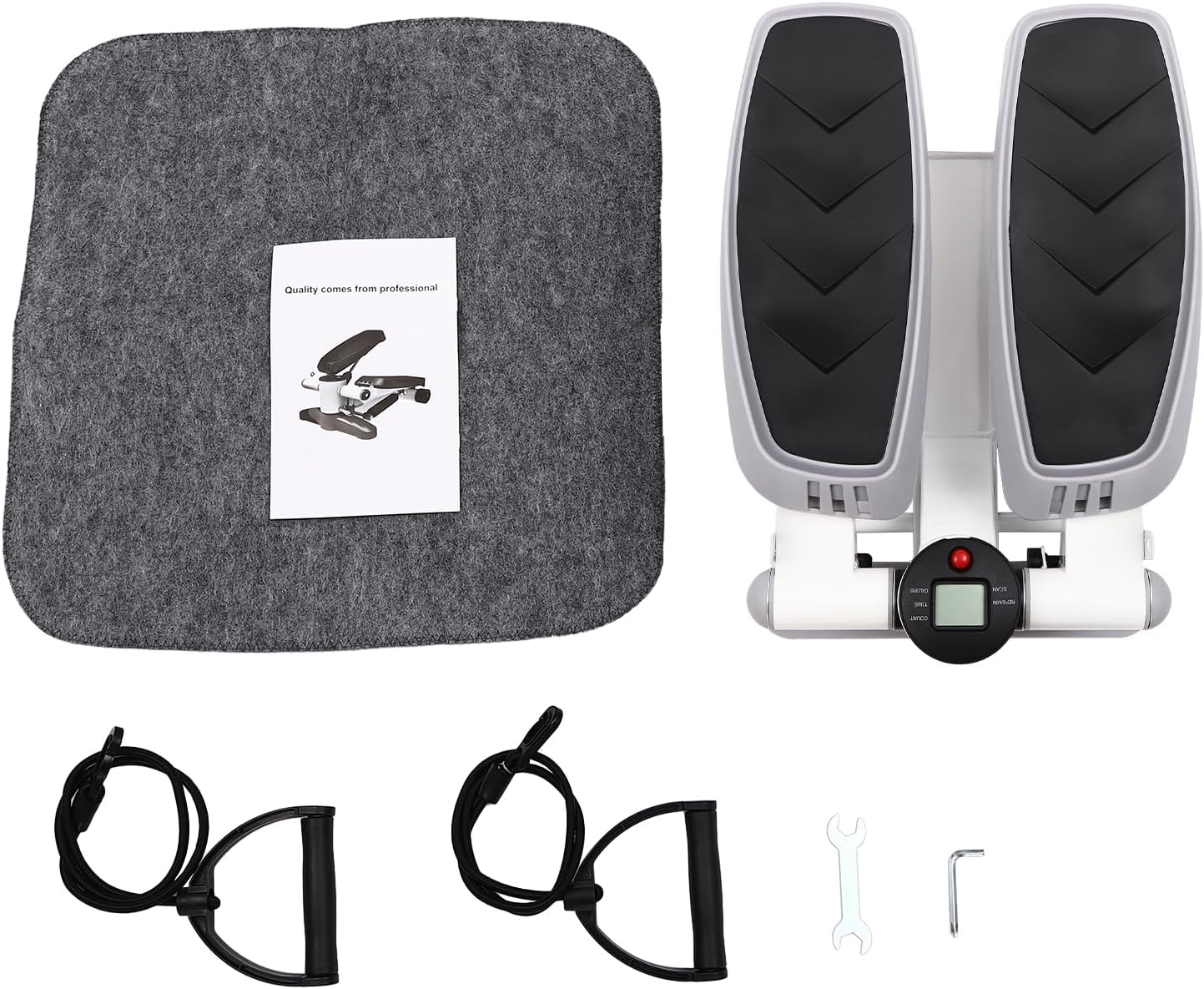 Stepper Fitness Stepper Portable Home Mini Stepper with Resistance Bands, Height Adjustable Exercise Workout Machine, for Home, Office, Gym, 39 x 31.5 x 21 cm