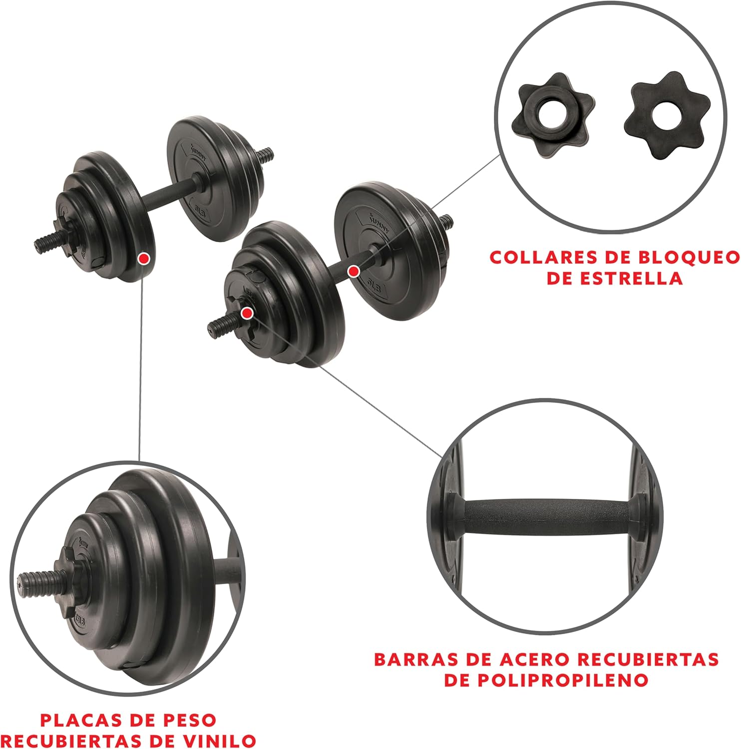 【SET INCLUDES】(2) Steel Bars, (4) Star Lock Collars, (4) 0.7kg Discs, (4) 1.1kg Discs, (4) 2.3kg Discs.