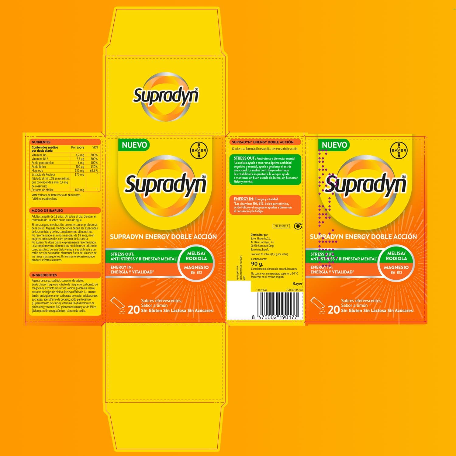 Supradyn Energy Double Action Stress Out – Multivitamin with Magnesium, Vitamins B6, B12, Folic Acid, Rhodiola and Melissa – Anti-Stress, Energy, Memory, 20 Sachets Lemon